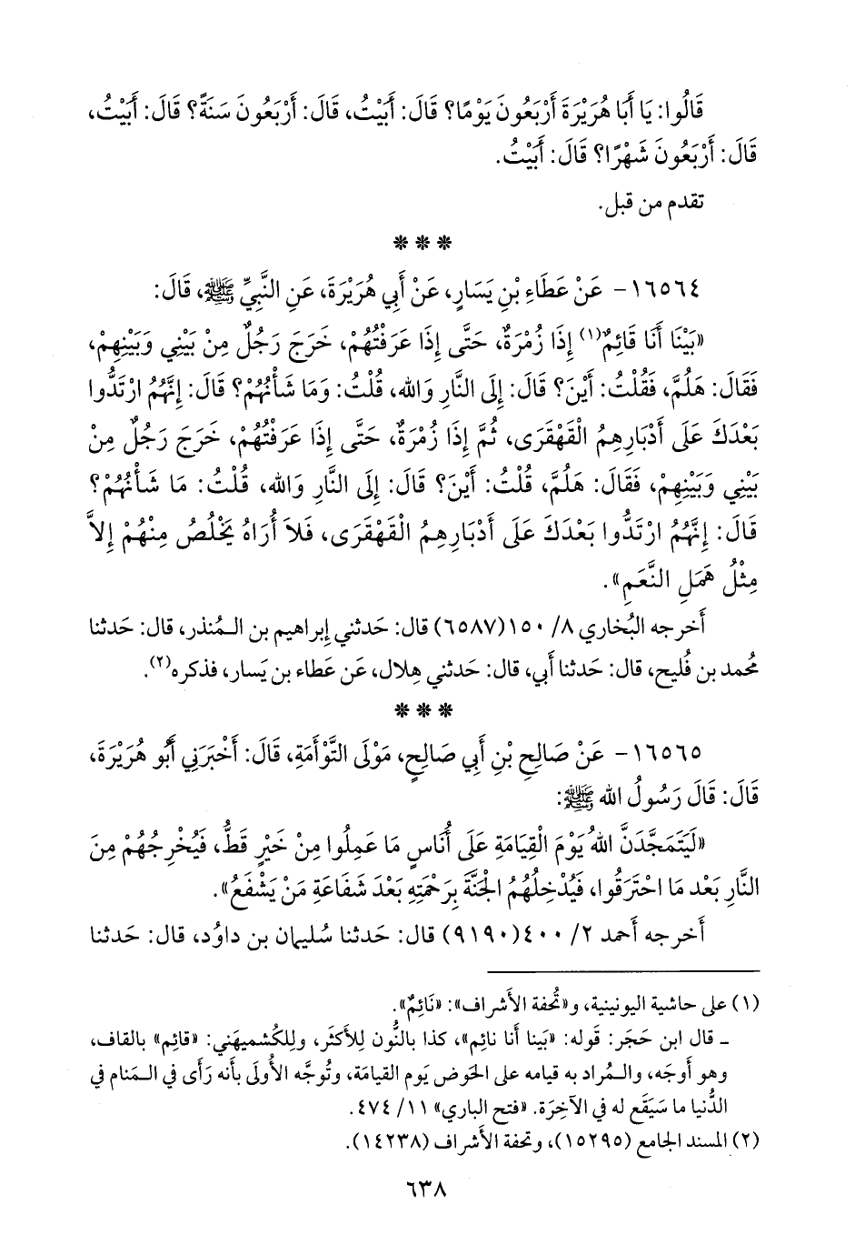 (¬١) المسند الجامع (١٥٢٩٨)، وأطراف المسند (٩٦٧٣)، ومَجمَع الزوائد ١٠/ ٣٨٣، وإتحاف الخِيرَة المَهَرة (٧٧٧٤).