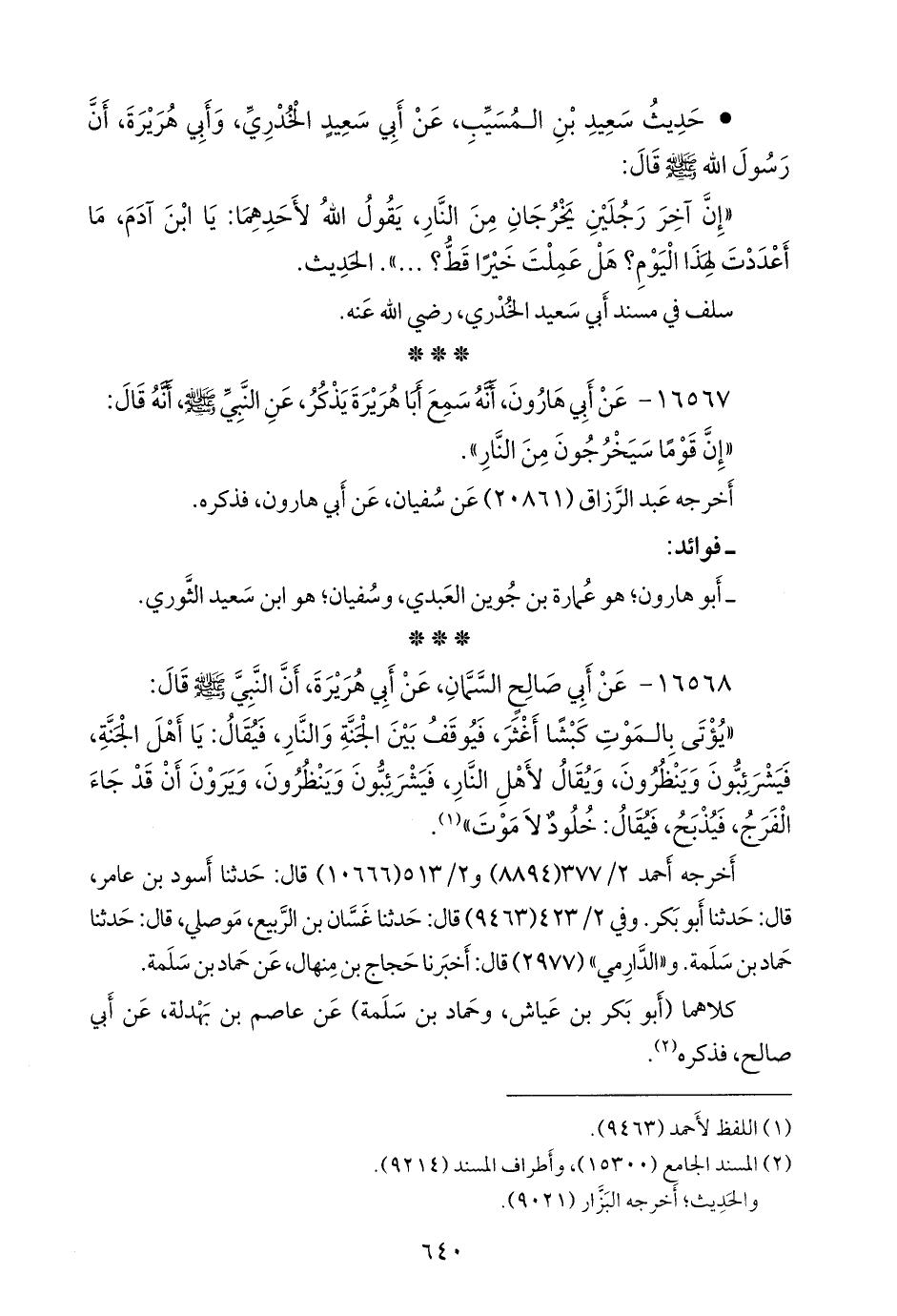 - رواه أَبو معاوية محمد بن خازم، ومحمد بن عُبيد، ويَعلى بن عُبيد، وحفص بن غِياث، وجَرير بن عبد الحميد، والنضر بن إِسماعيل، ومحمد بن فُضيل، عن الأَعمش، عن أَبي صالح ذَكوان، عن أَبي سعيد الخُدْري، وسلف في مسنده برقم (١٣١٤٧).