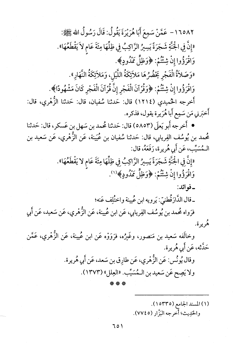 • أَخرجه أَبو يَعلى (٥٨٥٣) قال: حدثنا محمد بن سهل بن عسكر، قال: حدثنا محمد بن يوسف الفريابي، قال: حدثنا سفيان بن عُيينة، عن الزُّهْري، عن سعيد بن المُسَيب، عن أبي هريرة، رفعه، قال: