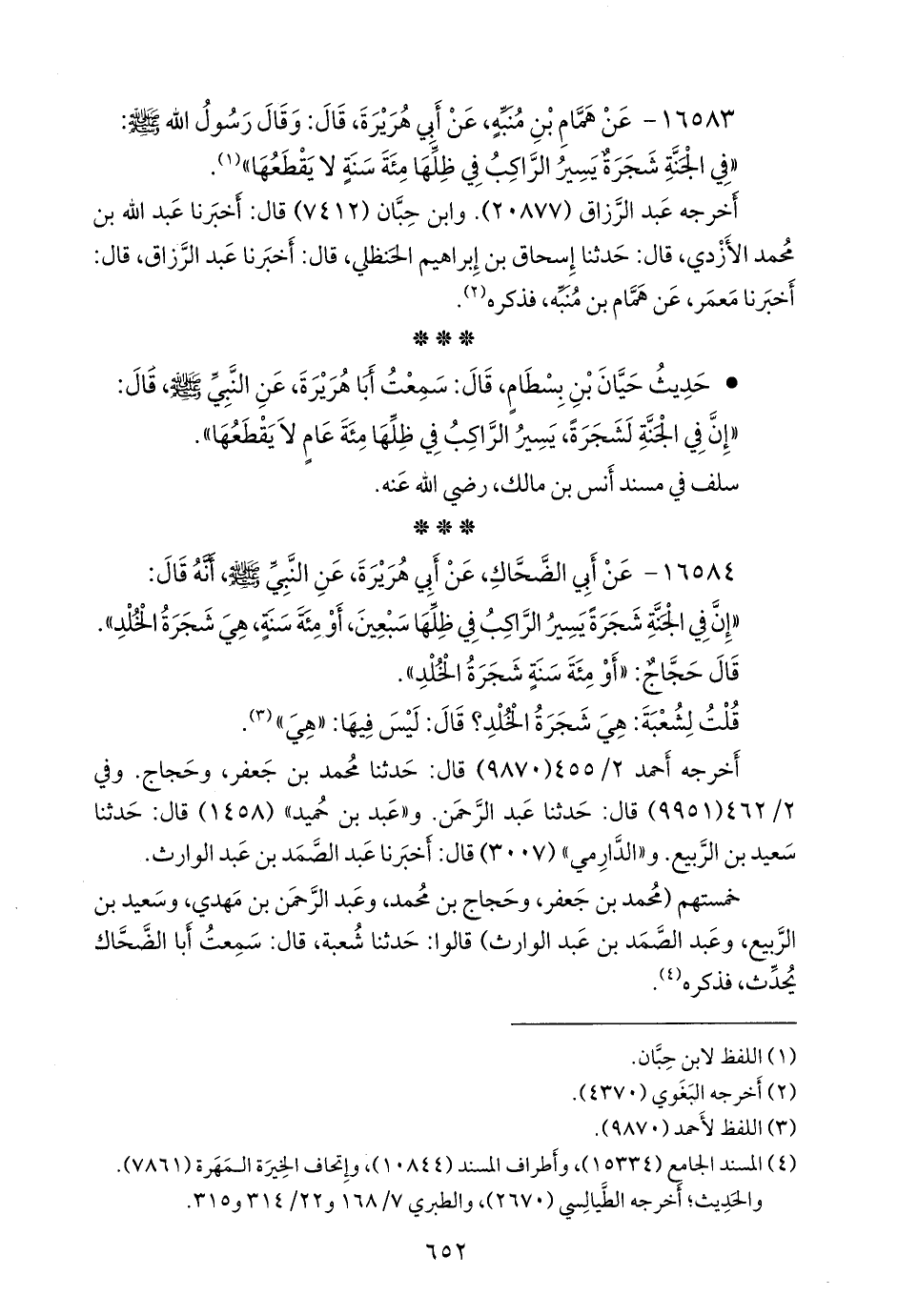 «إن في الجنة شجرة يسير الراكب في ظلها سبعين، أو مئة سنة، هي شجرة الخلد».