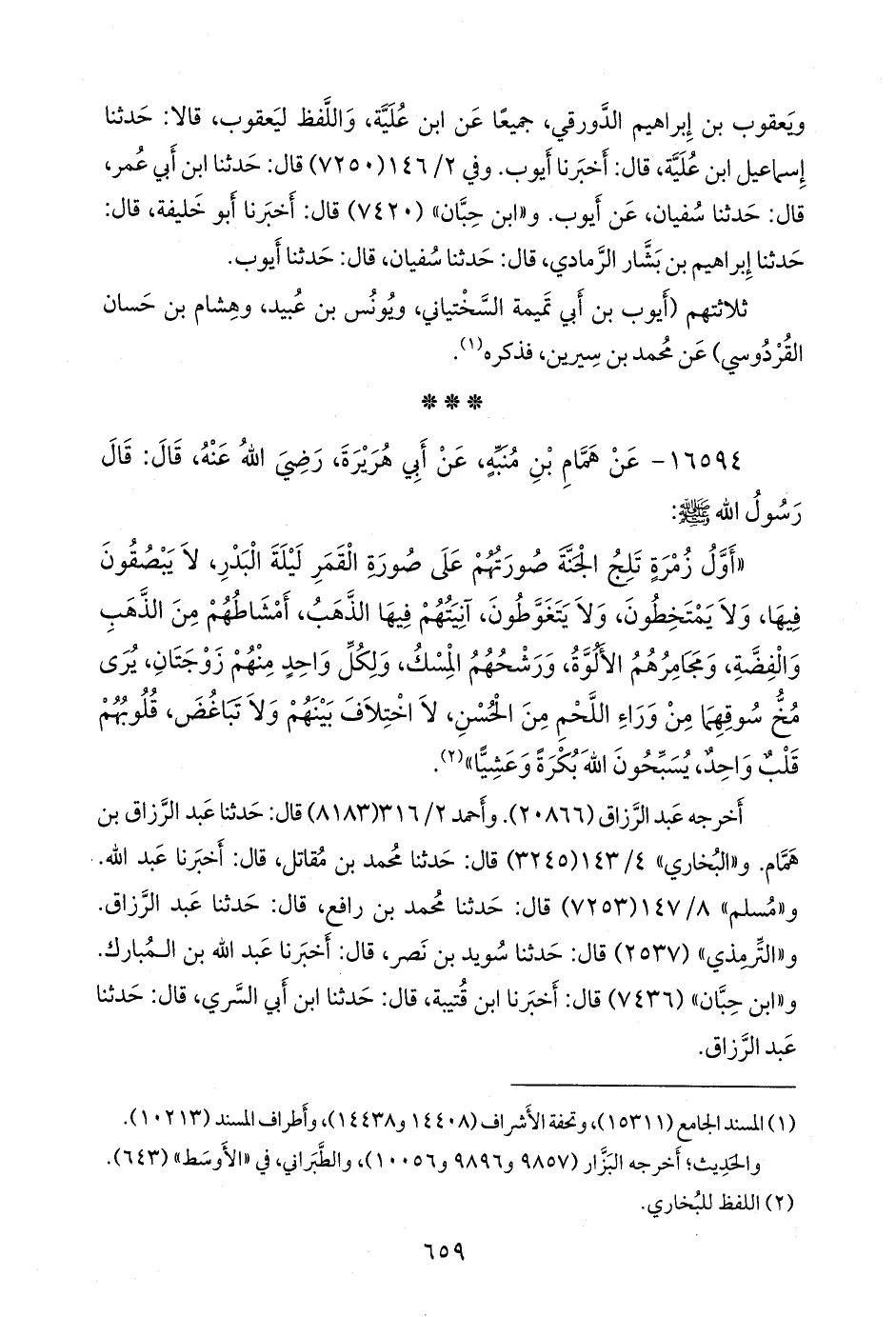 أخرجه عبد الرزاق (٢٠٨٦٦). وأحمد (٨١٨٣) قال: حدثنا عبد الرزاق بن همام. و «البخاري» ٤/ ١٤٣ (٣٢٤٥) قال: حدثنا محمد بن مقاتل، قال: أخبرنا عبد الله. و «مسلم» ٨/ ١٤٧ (٧٢٥٣) قال: حدثنا محمد بن رافع، قال: حدثنا عبد الرزاق. و «التِّرمِذي» (٢٥٣٧) قال: حدثنا سويد بن نصر، قال: أخبرنا عبد الله بن المبارك. و «ابن حِبَّان» (٧٤٣٦) قال: أخبرنا ابن قتيبة، قال: حدثنا ابن أبي السري، قال: حدثنا عبد الرزاق.