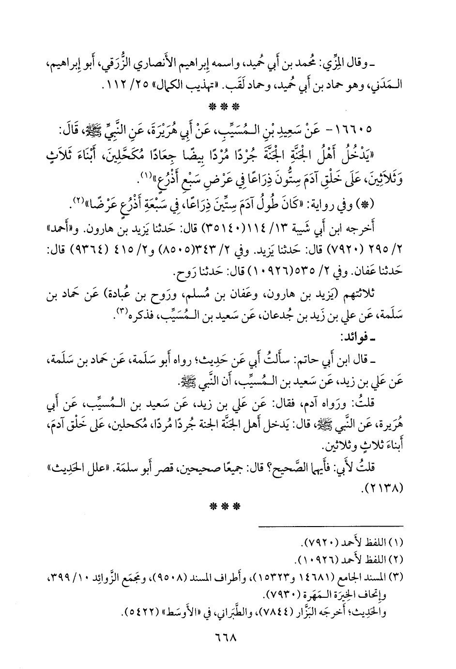 ثلاثتهم (يزيد بن هارون، وعفان بن مسلم، وروح بن عبادة) عن حماد بن سلمة, عن علي بن زيد بن جدعان, عن سعيد بن المُسَيب، فذكره (¬٣).