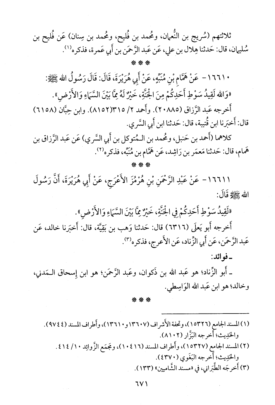 ١٦٦١١ - عن عبد الرَّحمَن بن هُرمُز الأعرج، عن أبي هريرة، أن رسول الله صَلى الله عَليه وسَلم قال: