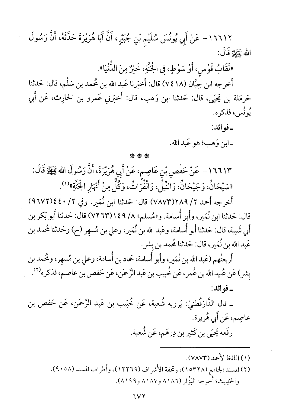 (¬٢) المسند الجامع (١٥٣٢٨)، وتحفة الأشراف (١٢٢٦٩)، وأطراف المسند (٩٠٥٨).