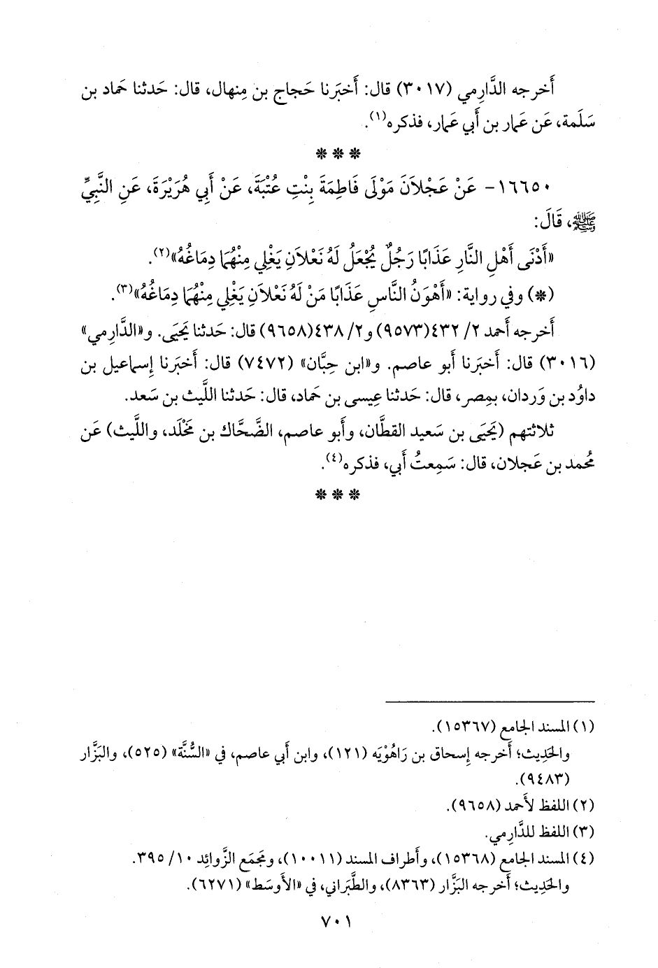 (¬٣) المسند الجامع (١٥٣٦٨)، وأطراف المسند (١٠٠١١)، ومَجمَع الزوائد ١٠/ ٣٩٥.