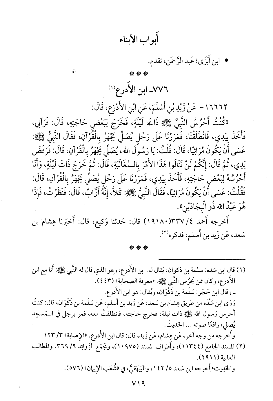 وأخرجه من وجه آخر، عن هشام، عن زيد، قال: قال ابن الأدرع. «الإصابة» ٣/ ١٢٣.