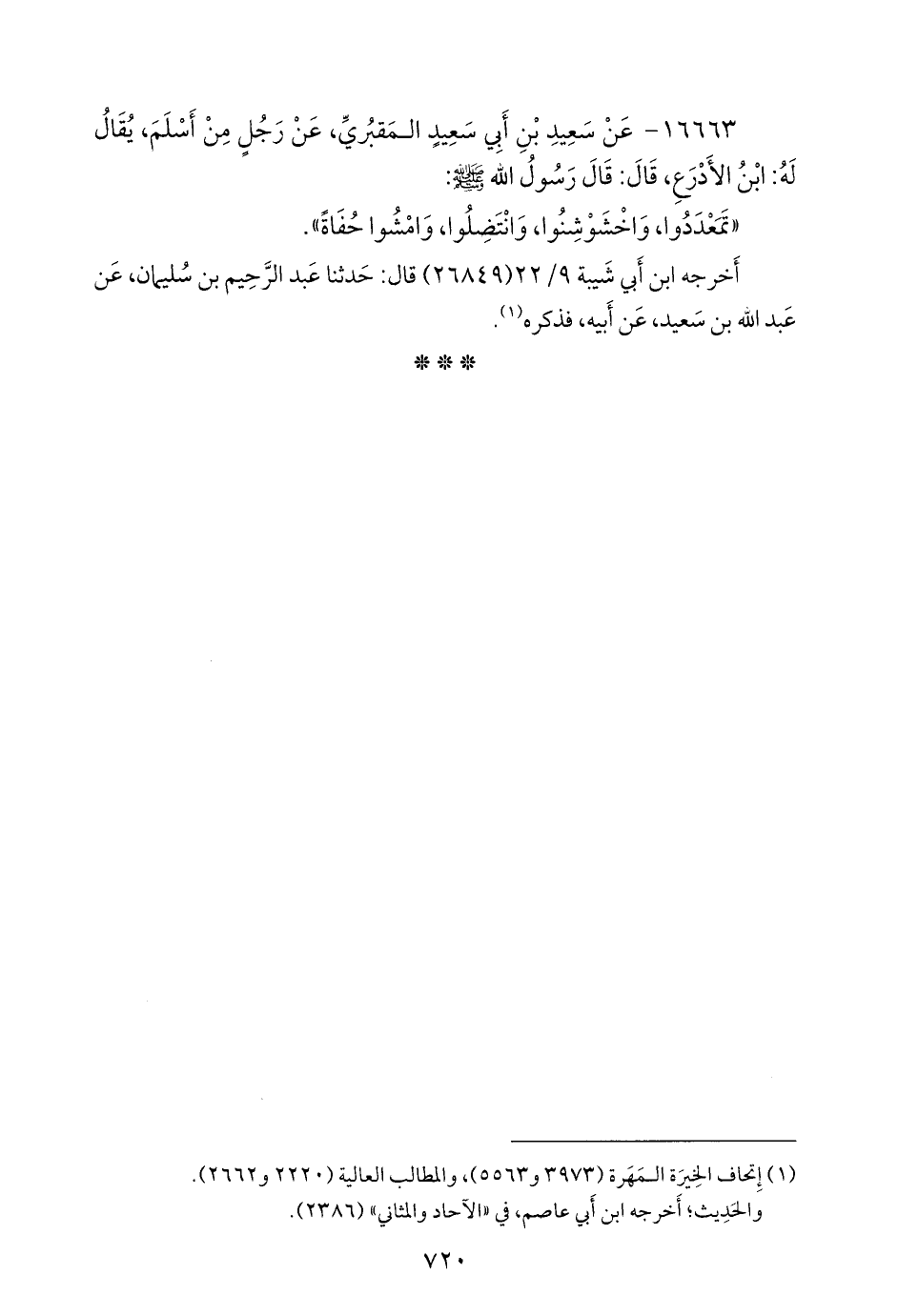 ١٦٦٦٣ - عن سعيد بن أبي سعيد المَقبُري، عن رجل من أسلم، يقال له: ابن الأدرع، قال: قال رسول الله صَلى الله عَليه وسَلم: