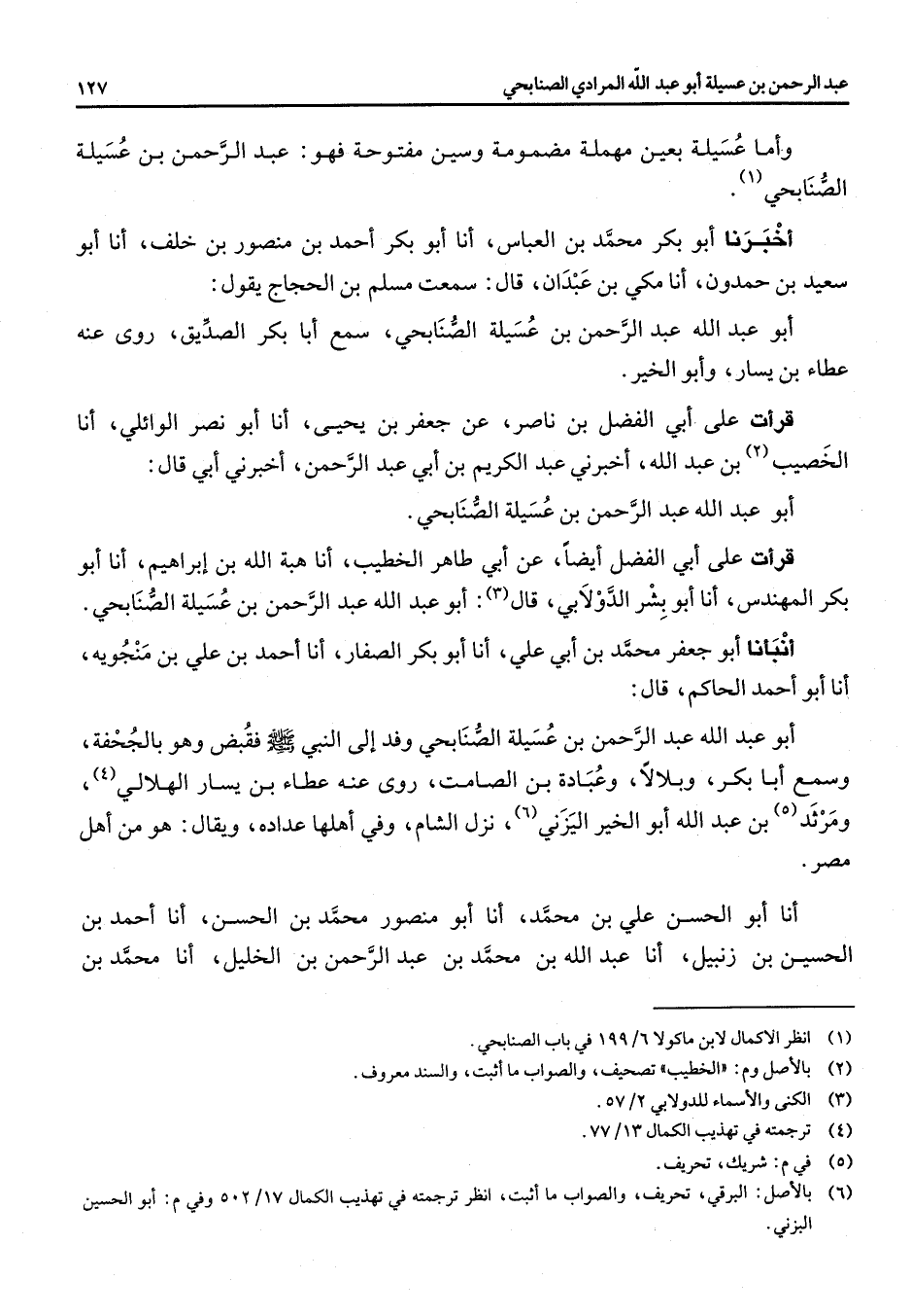 (1) انظر الاكمال لابن ماكولا 6 / 199 في باب الصنابحي