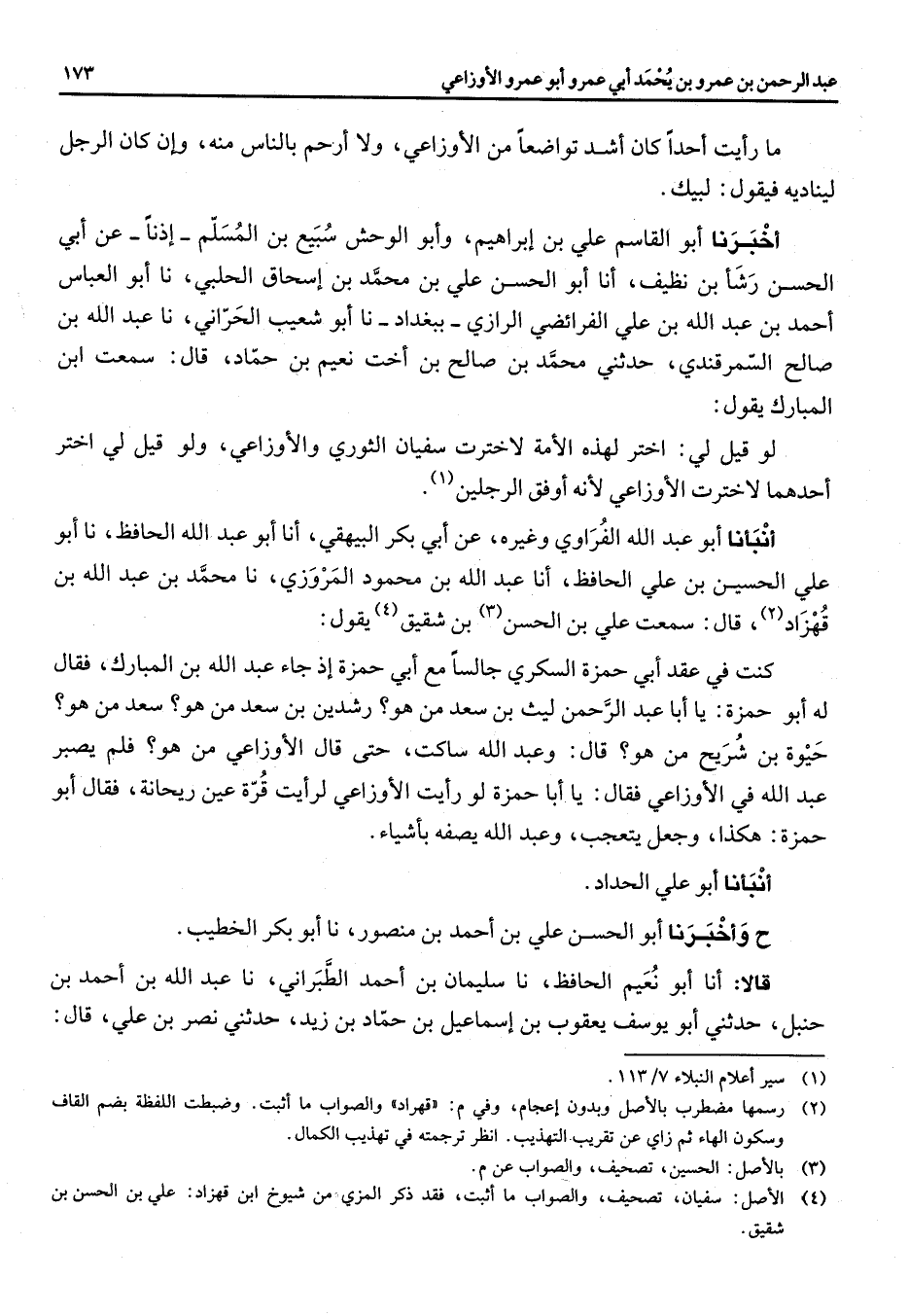 * (1) سير أعلام النبلاء 7 / 113