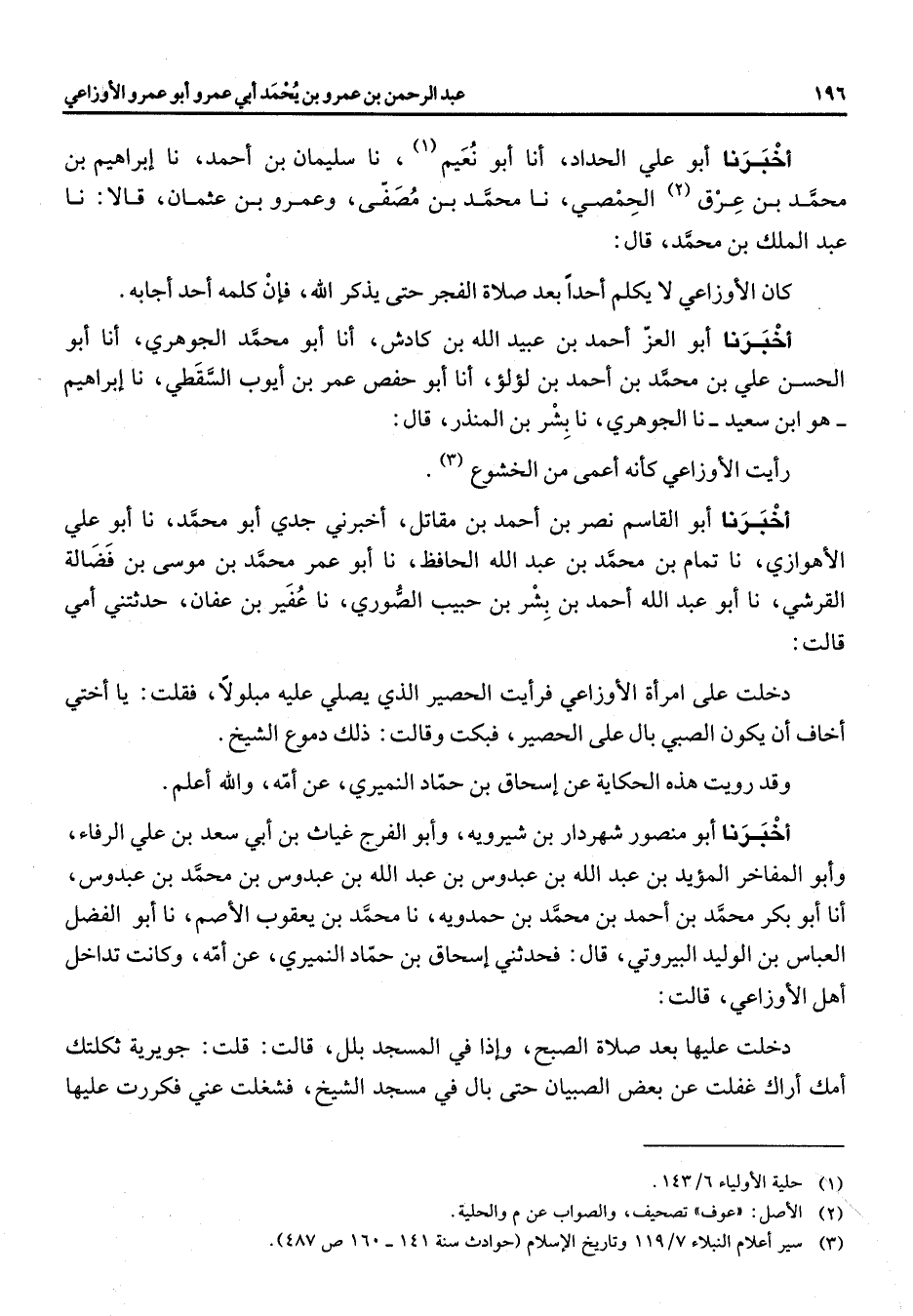 (1) حلية الأولياء 6 / 143