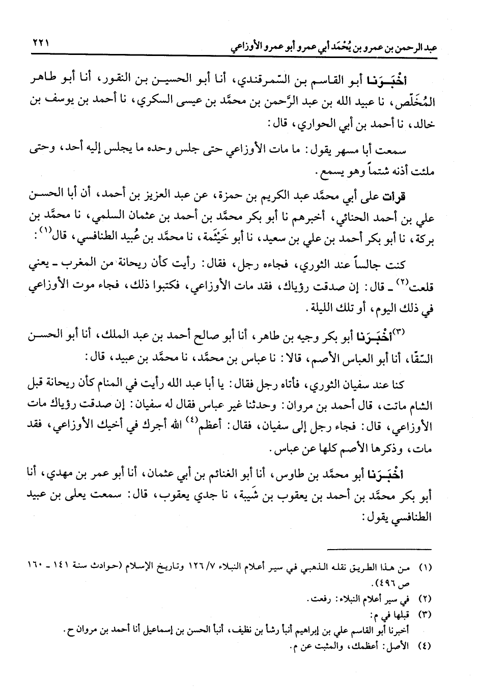 (1) من هذا الطريق نقله الذهبي في سير أعلام النبلاء 7 / 126 وتاريخ الإسلام (حوادث سنة سنة 141 - 160 ص 496)