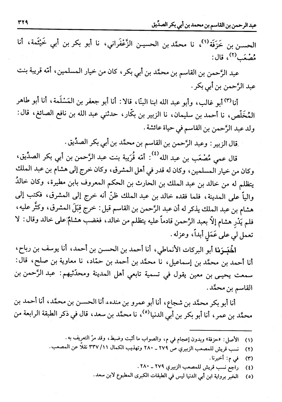 (2) نسب قريش للمصعب الزبيري ص 279 - 280 وتهذيب الكمال 11 / 337 نقلا عن المصعب
