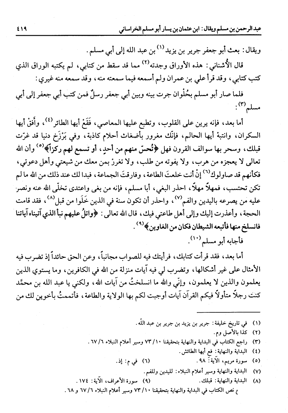 (10) راجع نص الكتاب في البداية والنهاية بتحقيقنا 10 / 73 وسير أعلام النبلاء 6 / 67 و 68