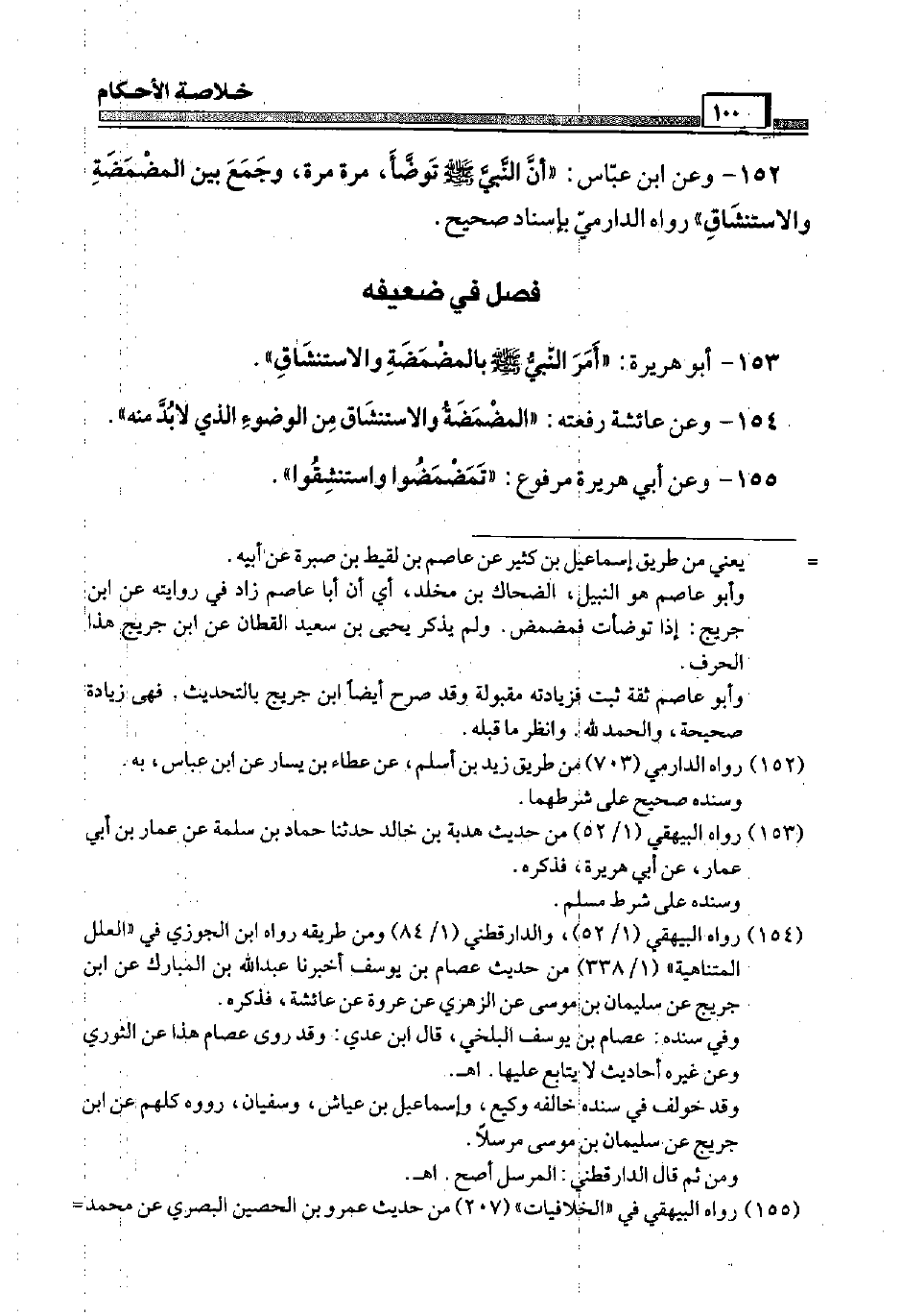 152 - وَعَن ابْن عَبَّاس: " أَن النَّبِي صَلَّى اللَّهُ عَلَيْهِ وَسَلَّم َ تَوَضَّأ، مرّة مرّة، وَجمع بَين الْمَضْمَضَة وَالِاسْتِنْشَاق " رَوَاهُ الدَّارمِيّ بِإِسْنَاد صَحِيح.