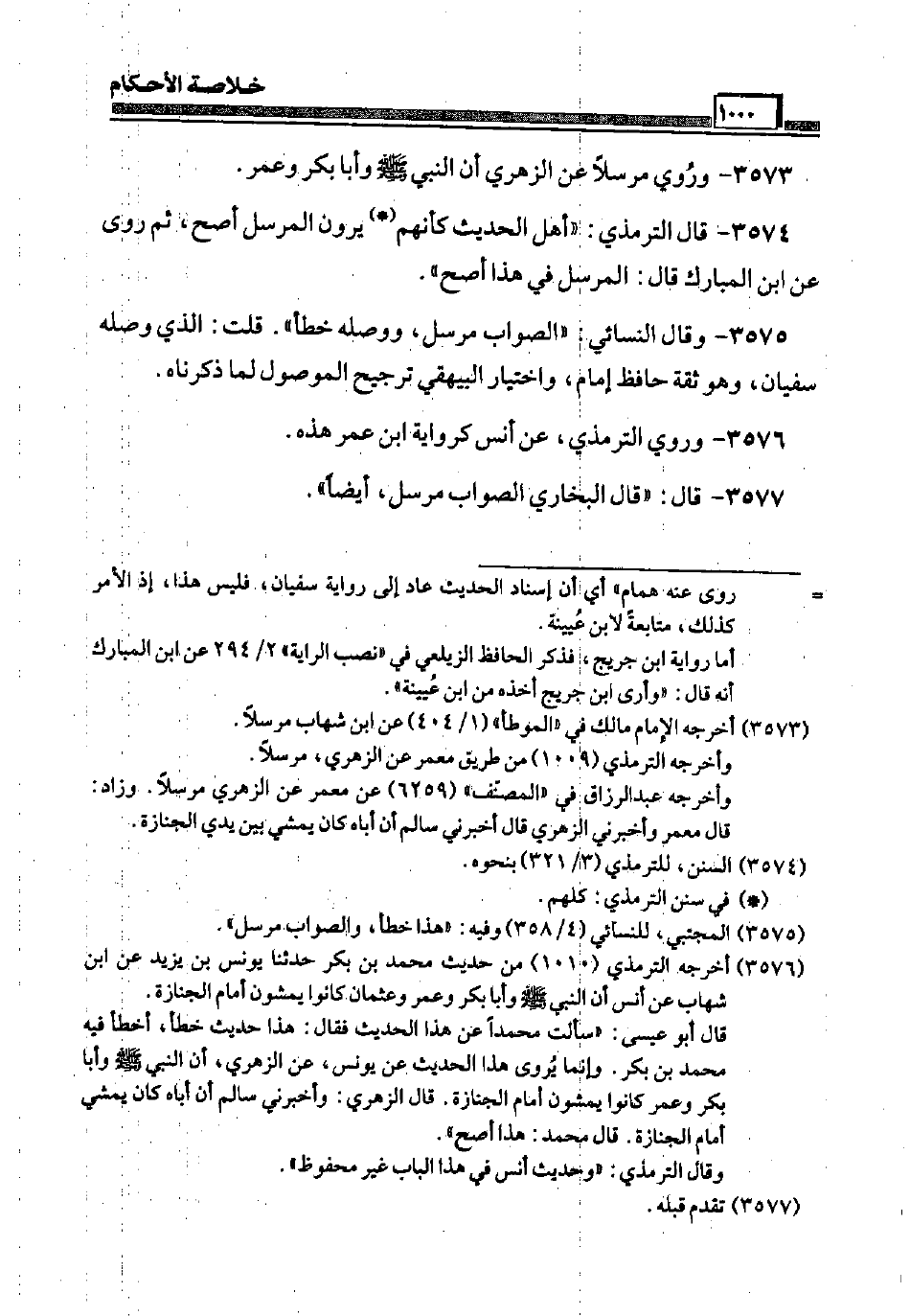 3574 - قَالَ التِّرْمِذِيّ: " أهل الحَدِيث كَأَنَّهُمْ يرَوْنَ الْمُرْسل أصح، ثمَّ رَوَى عَن ابْن الْمُبَارك قَالَ: الْمُرْسل فِي هَذَا أصح ".