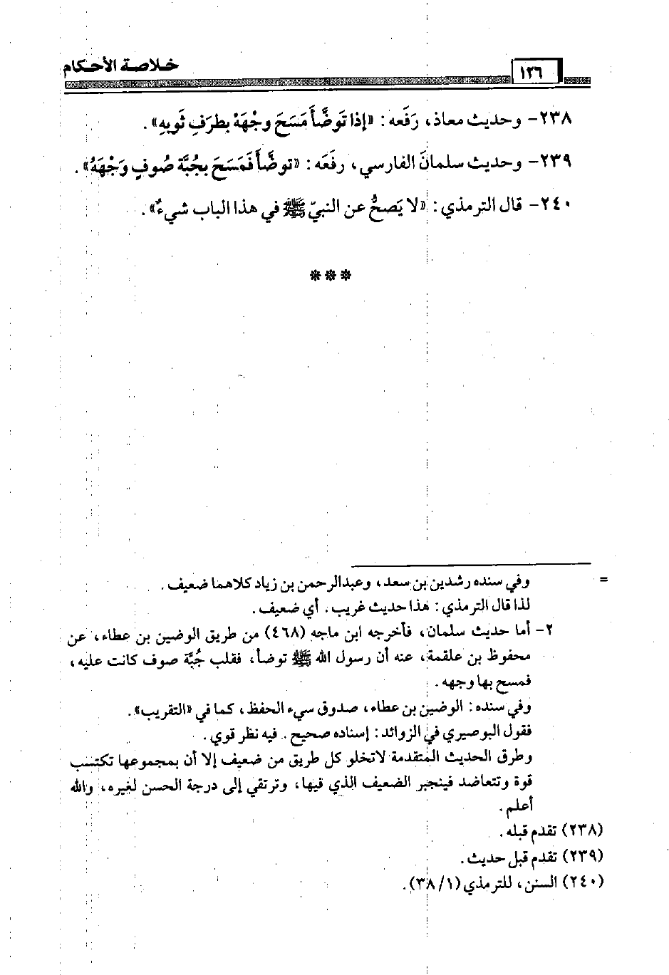 240 - قَالَ التِّرْمِذِيّ: " لَا يَصح عَن النَّبِي صَلَّى اللَّهُ عَلَيْهِ وَسَلَّم َ فِي هَذَا الْبَاب شَيْء ".