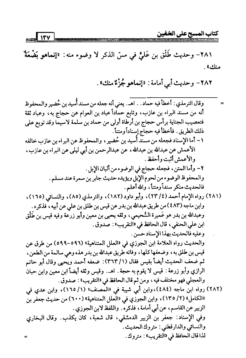 281 - وَحَدِيث طلق بن عَلّي فِي مس الذّكر لَا وضوء مِنْهُ: " إِنَّمَا هُوَ بضعَة مِنْك ".
