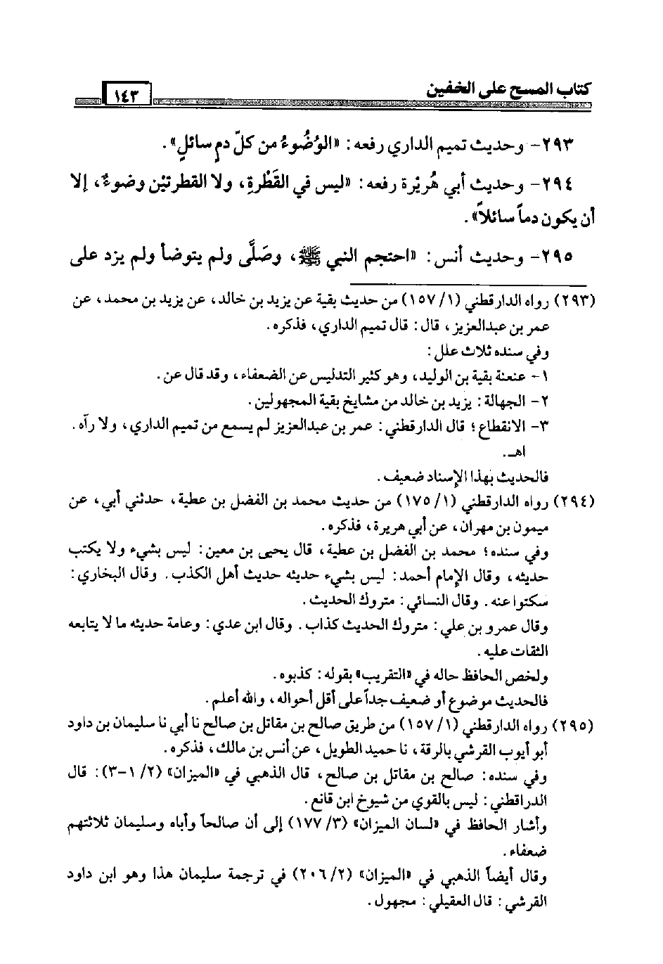293 - وَحَدِيث تَمِيم الدَّارِيّ رَفعه: " الْوضُوء من كل دم سَائل ".