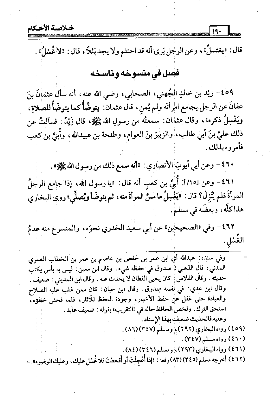 462 - وَفِي " الصَّحِيحَيْنِ " عَن أبي سعيد الْخُدْرِيّ نَحوه، والمنسوخ مِنْهُ عدم الْغسْل