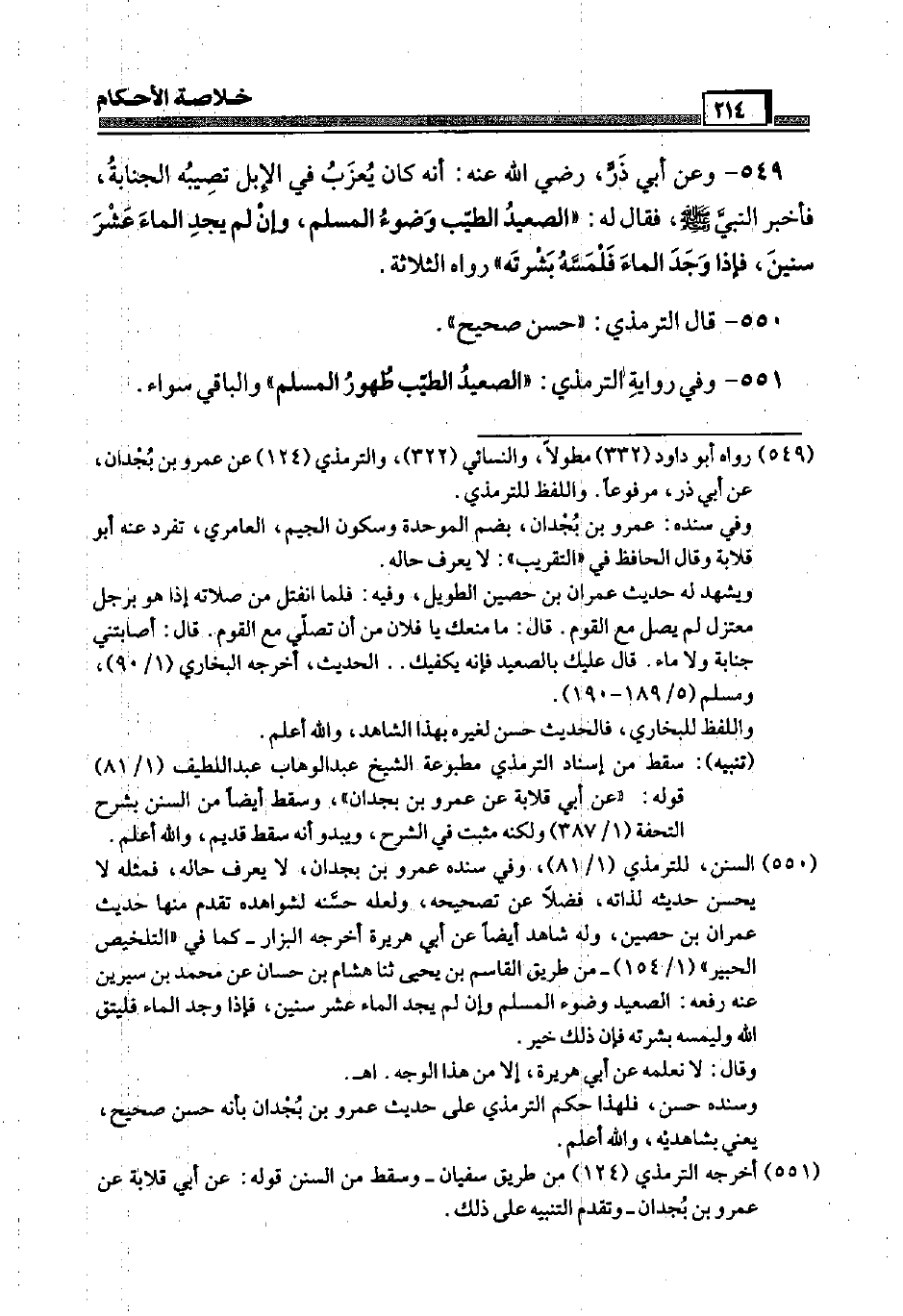 551 - وَفِي رِوَايَة التِّرْمِذِيّ: " الصَّعِيد الطّيب طهُور الْمُسلم ". وَالْبَاقِي سَوَاء.