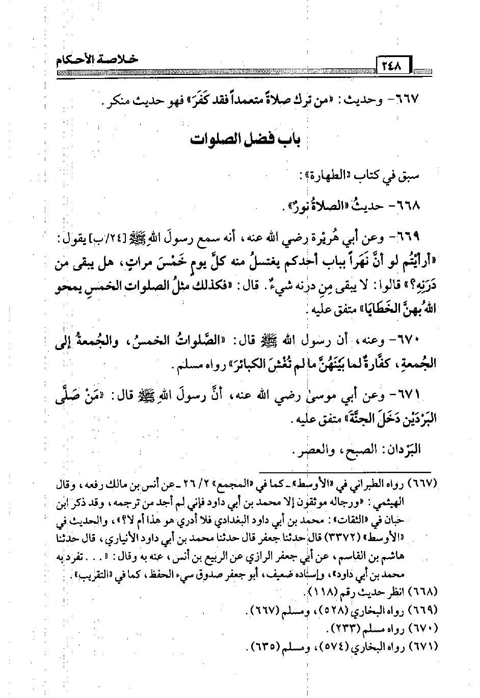667 - وَحَدِيث: " من ترك صَلَاة مُتَعَمدا فقد كفر " فَهُوَ حَدِيث مُنكر.