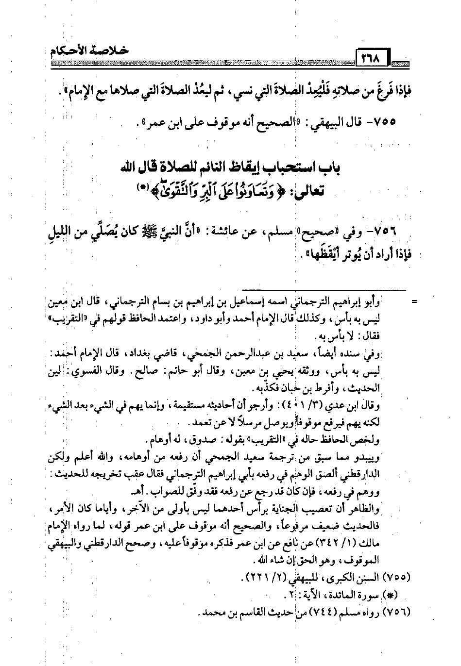 755 - قَالَ الْبَيْهَقِيّ: " الصَّحِيح أَنه مَوْقُوف عَلَى ابْن عمر ".