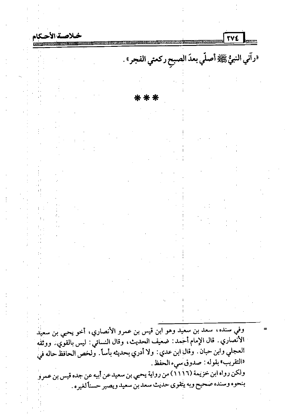 " رَآنِي النَّبِي صَلَّى اللَّهُ عَلَيْهِ وَسَلَّم َ أُصَلِّي بعد الصُّبْح رَكْعَتي الْفجْر ".