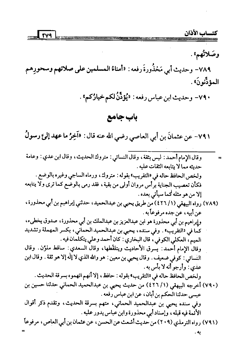 789 - وَحَدِيث أبي مَحْذُورَة رَفعه: " أُمَنَاء الْمُسلمين عَلَى صلَاتهم وسحورهم المؤذنون ".