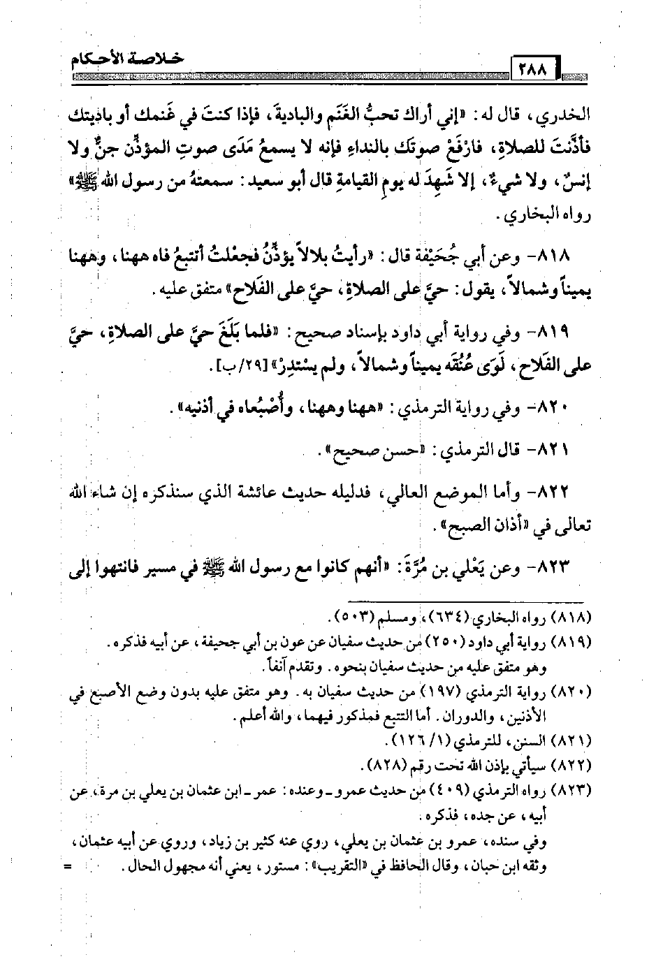 818 - وَعَن أبي جُحَيْفَة قَالَ: " رَأَيْت بِلَالًا يُؤذن فَجعلت أتتبع فَاه هَهُنَا، وَهَهُنَا يَمِينا وَشمَالًا، يَقُول: حَيّ عَلَى الصَّلَاة، حَيّ عَلَى الْفَلاح " مُتَّفق عَلَيْهِ.