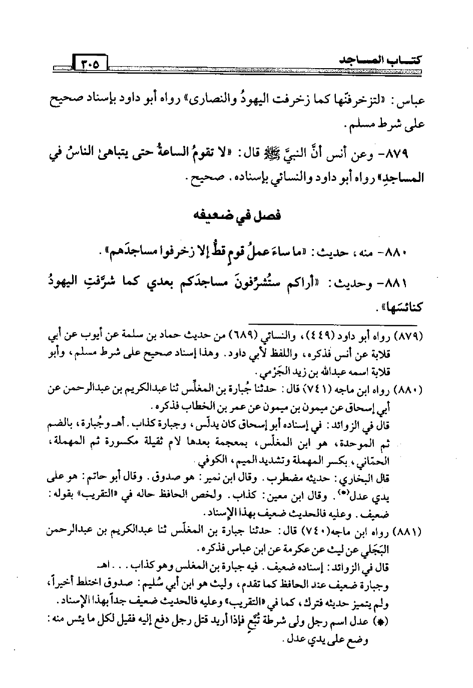 881 - وَحَدِيث: " أَرَاكُم ستشرِّفون مَسَاجِدكُمْ بعدِي كَمَا شرّفت الْيَهُود كنائسها ".