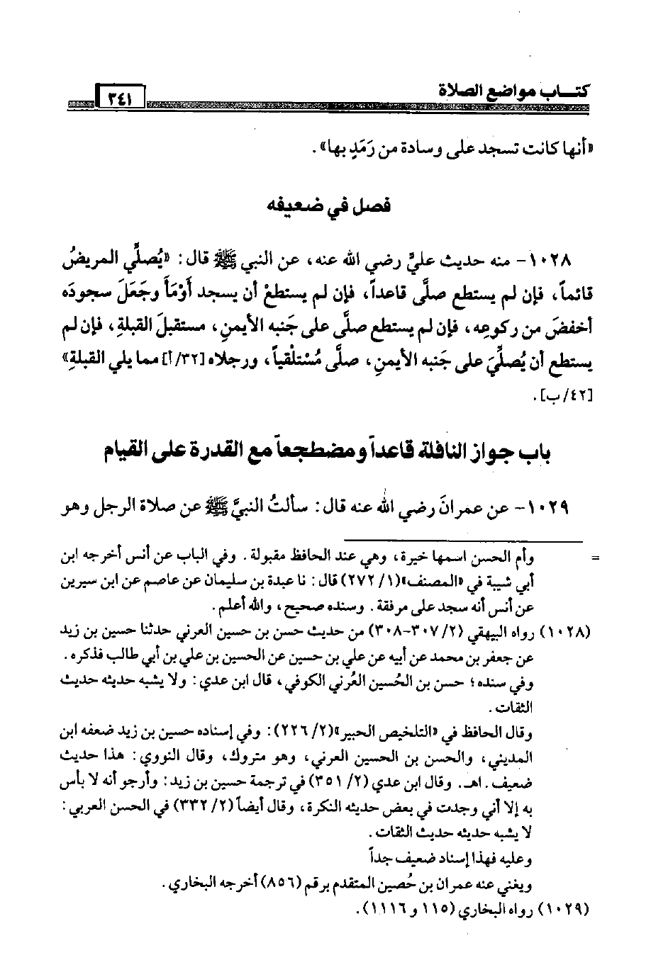 1029 - عَن عمرَان رَضِيَ اللَّهُ عَنْه قَالَ: سَأَلت النَّبِي صَلَّى اللَّهُ عَلَيْهِ وَسَلَّم َ عَن صَلَاة الرجل وَهُوَ