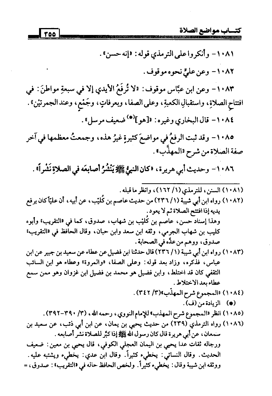 1085 - وَقد ثَبت الرّفْع فِي مَوَاضِع كَثِيرَة غير هَذِه، وجمعت معظمها فِي آخر صفة الصَّلَاة من شرح " الْمُهَذّب ".