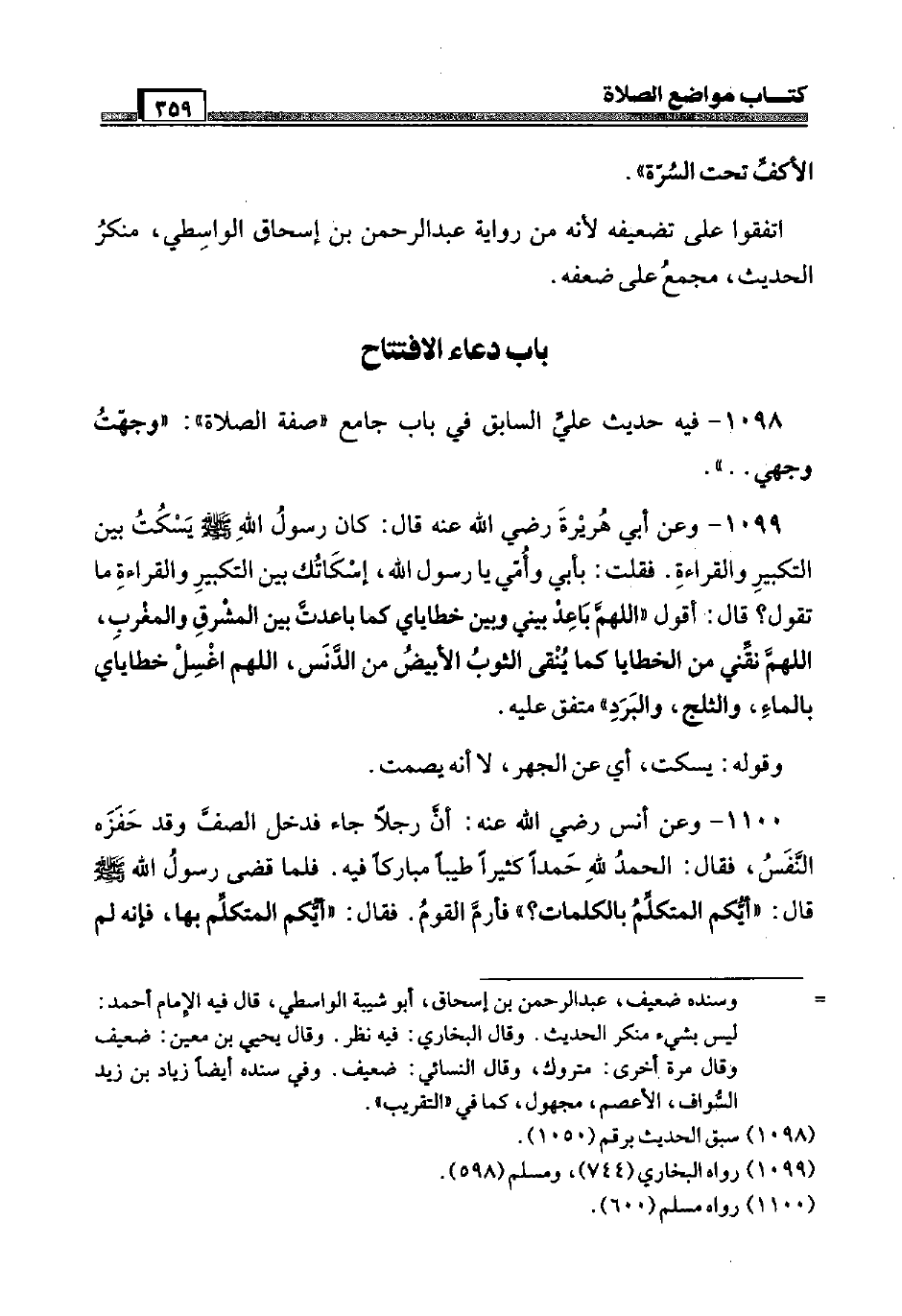 1098 - فِيهِ حَدِيث عَلّي السَّابِق فِي بَاب جَامع " صفة الصَّلَاة ": " وجهت وَجْهي. . ".