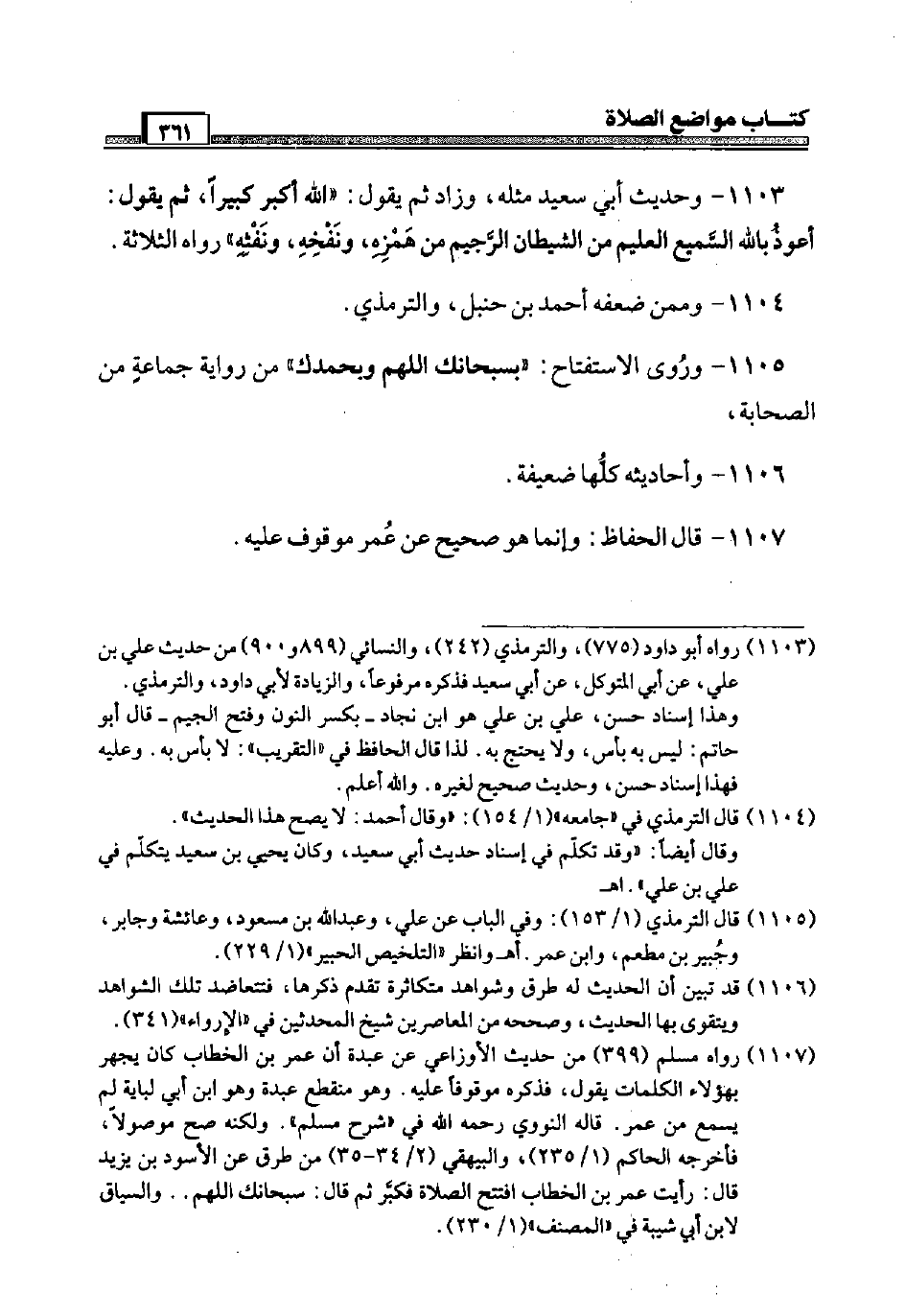 1105 - وَرَوَى الاستفتاح: " بسبحانك اللَّهُمَّ وَبِحَمْدِك " من رِوَايَة جمَاعَة من الصَّحَابَة،