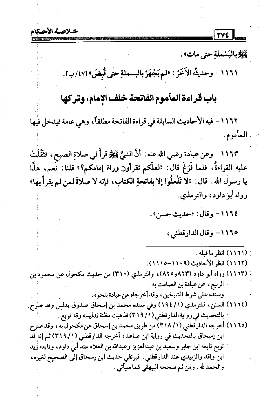 1162 - فِيهِ الْأَحَادِيث السَّابِقَة فِي قِرَاءَة الْفَاتِحَة مُطلقًا، وَهِي عَامَّة فَيدْخل فِيهَا الْمَأْمُوم.