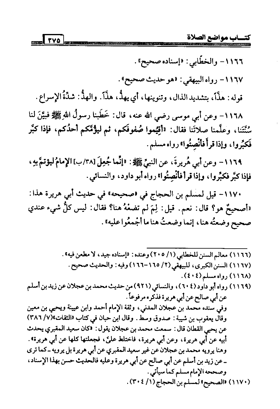1168 - وَعَن أبي مُوسَى رَضِيَ اللَّهُ عَنْه، قَالَ: خَطَبنَا رَسُول الله صَلَّى اللَّهُ عَلَيْهِ وَسَلَّم َ فَبين لنا سنتنا، وَعلمنَا صَلَاتنَا فَقَالَ: " أقِيمُوا صفوفكم، ثمَّ ليؤمكم أحدكُم، فَإِذا كبّر فكبِّروا، وَإِذا قَرَأَ فأنصتوا " رَوَاهُ مُسلم.