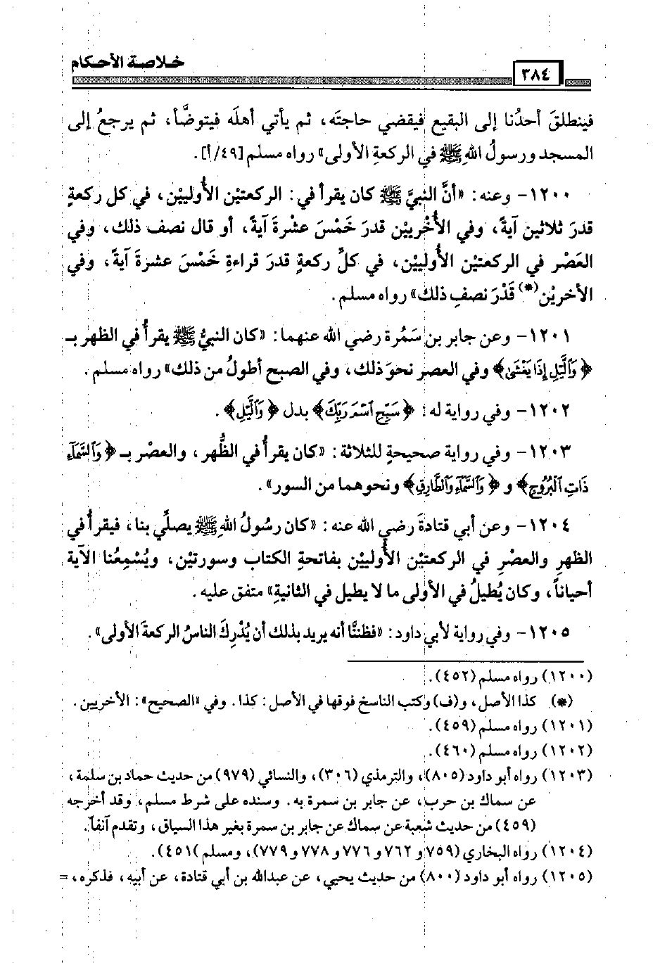 1200 - وَعنهُ: " أَن النَّبِي صَلَّى اللَّهُ عَلَيْهِ وَسَلَّم َ كَانَ يقْرَأ فِي: الرَّكْعَتَيْنِ الْأَوليين، فِي كل رَكْعَة قدر ثَلَاثِينَ آيَة، وَفِي الْأُخْرَيَيْنِ قدر خمس عشرَة آيَة، أَو قَالَ نصف ذَلِك، وَفِي الْعَصْر فِي الرَّكْعَتَيْنِ الْأَوليين، فِي كل رَكْعَة قدر قِرَاءَة خمس عشرَة آيَة، وَفِي الْأُخْرَيَيْنِ قدر نصف ذَلِك " رَوَاهُ مُسلم.