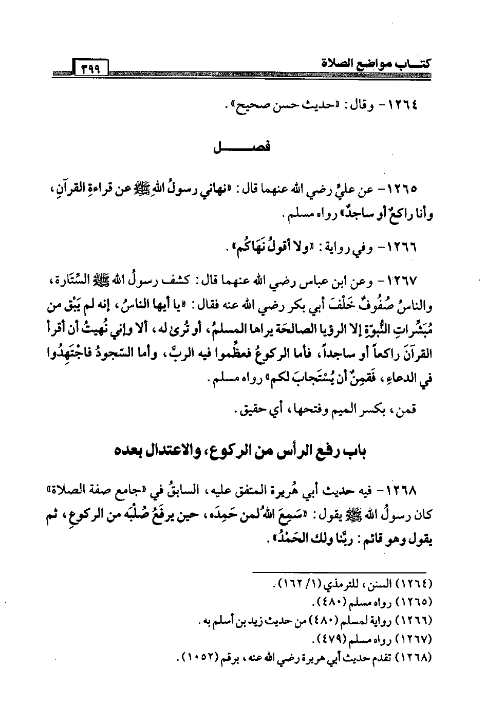 1265 - عَن عَلّي رَضِيَ اللَّهُ عَنْهما قَالَ: " نهاني رَسُول الله صَلَّى اللَّهُ عَلَيْهِ وَسَلَّم َ عَن قِرَاءَة الْقُرْآن، وَأَنا رَاكِع أَو ساجد " رَوَاهُ مُسلم.