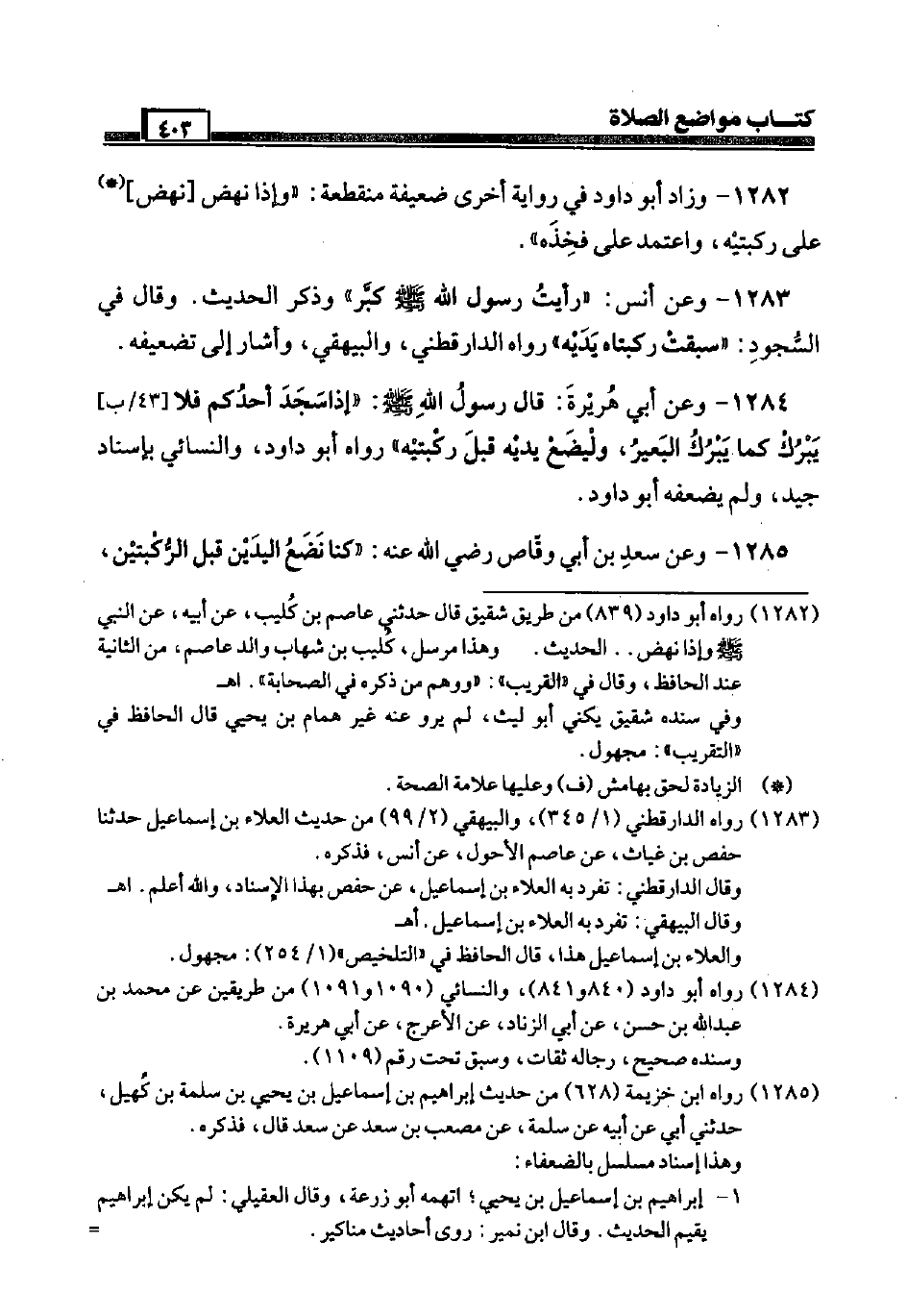 1282 - وَزَاد أَبُو دَاوُد فِي رِوَايَة أُخْرَى ضَعِيفَة مُنْقَطِعَة: " وَإِذا نَهَضَ [نَهَضَ] عَلَى رُكْبَتَيْهِ، وَاعْتمد عَلَى فَخذه ".