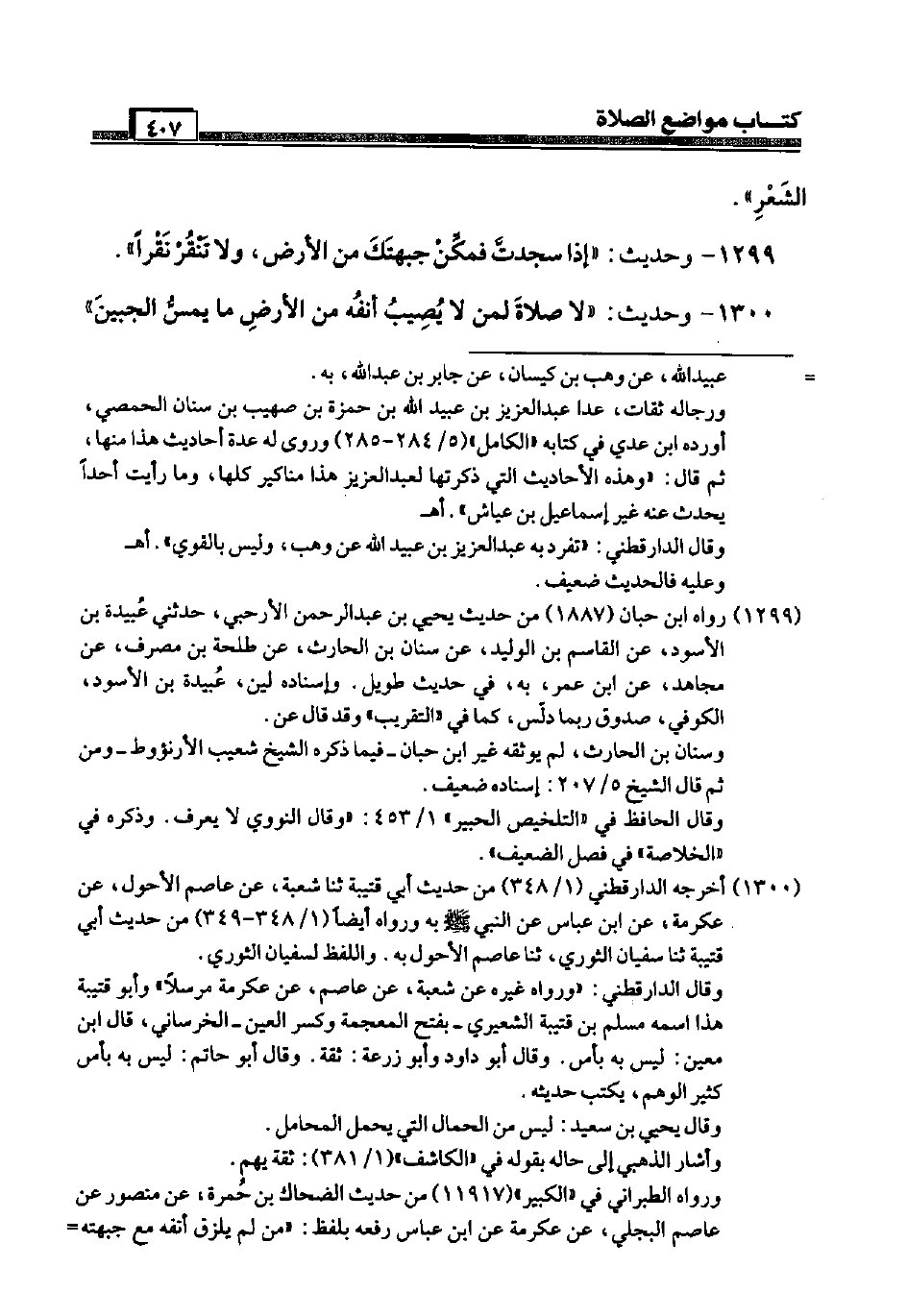 1300 - وَحَدِيث: " لَا صَلَاة لمن لَا يُصِيب أَنفه من الأَرْض مَا يمس الجبين ".