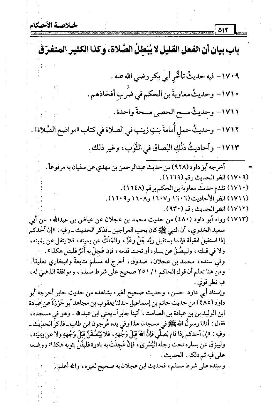 1711 - وَحَدِيث مسح الْحَصَى مسحة وَاحِدَة.