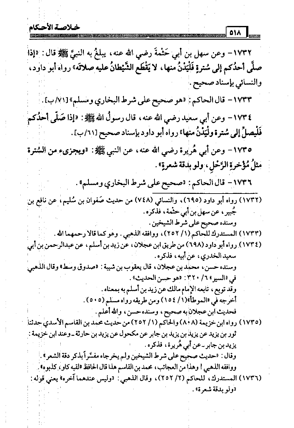 1732 - وَعَن سهل بن أبي حثْمَة رَضِيَ اللَّهُ عَنْه، يبلغ بِهِ النَّبِي صَلَّى اللَّهُ عَلَيْهِ وَسَلَّم َ قَالَ: " إِذا صَلَّى أحدكُم إِلَى ستْرَة فليدن مِنْهَا، لَا يقطع الشَّيْطَان عَلَيْهِ صلَاته " رَوَاهُ أَبُو دَاوُد، وَالنَّسَائِيّ بِإِسْنَاد صَحِيح.