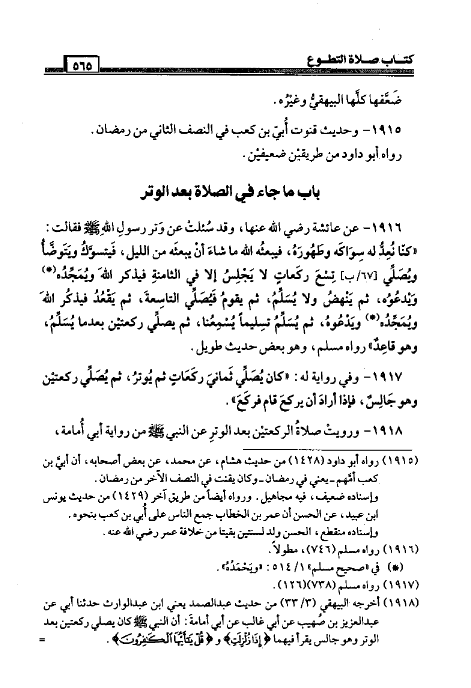 1918 - وَرويت صَلَاة الرَّكْعَتَيْنِ بعد الْوتر عَن النَّبِي صَلَّى اللَّهُ عَلَيْهِ وَسَلَّم َ من رِوَايَة أبي أُمَامَة،