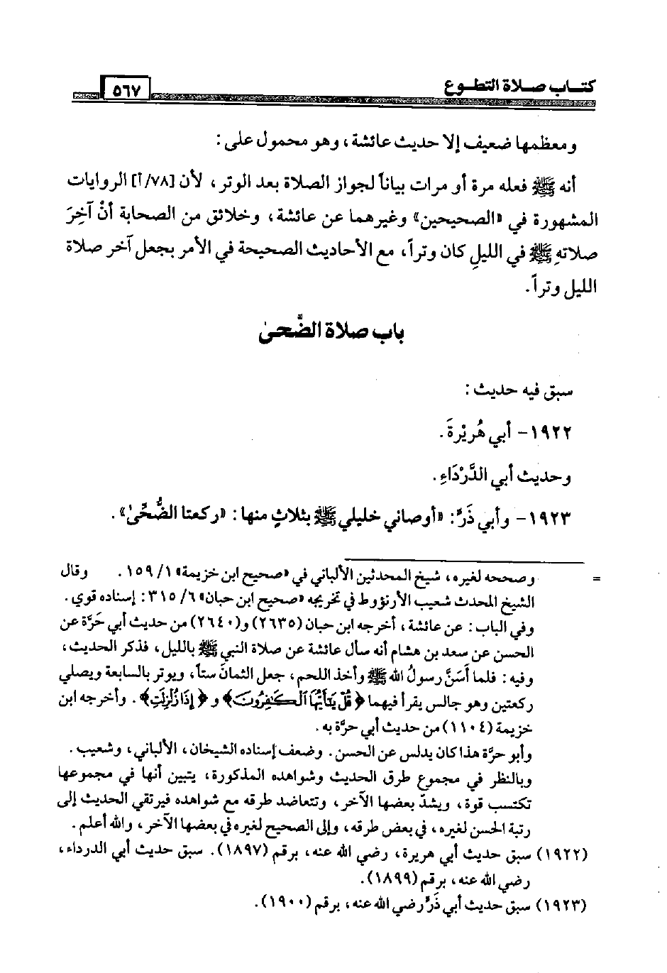 1923 - وَأبي ذَر: " أَوْصَانِي خليلي صَلَّى اللَّهُ عَلَيْهِ وَسَلَّم َ بِثَلَاث مِنْهَا: " رَكعَتَا الضُّحَى ".