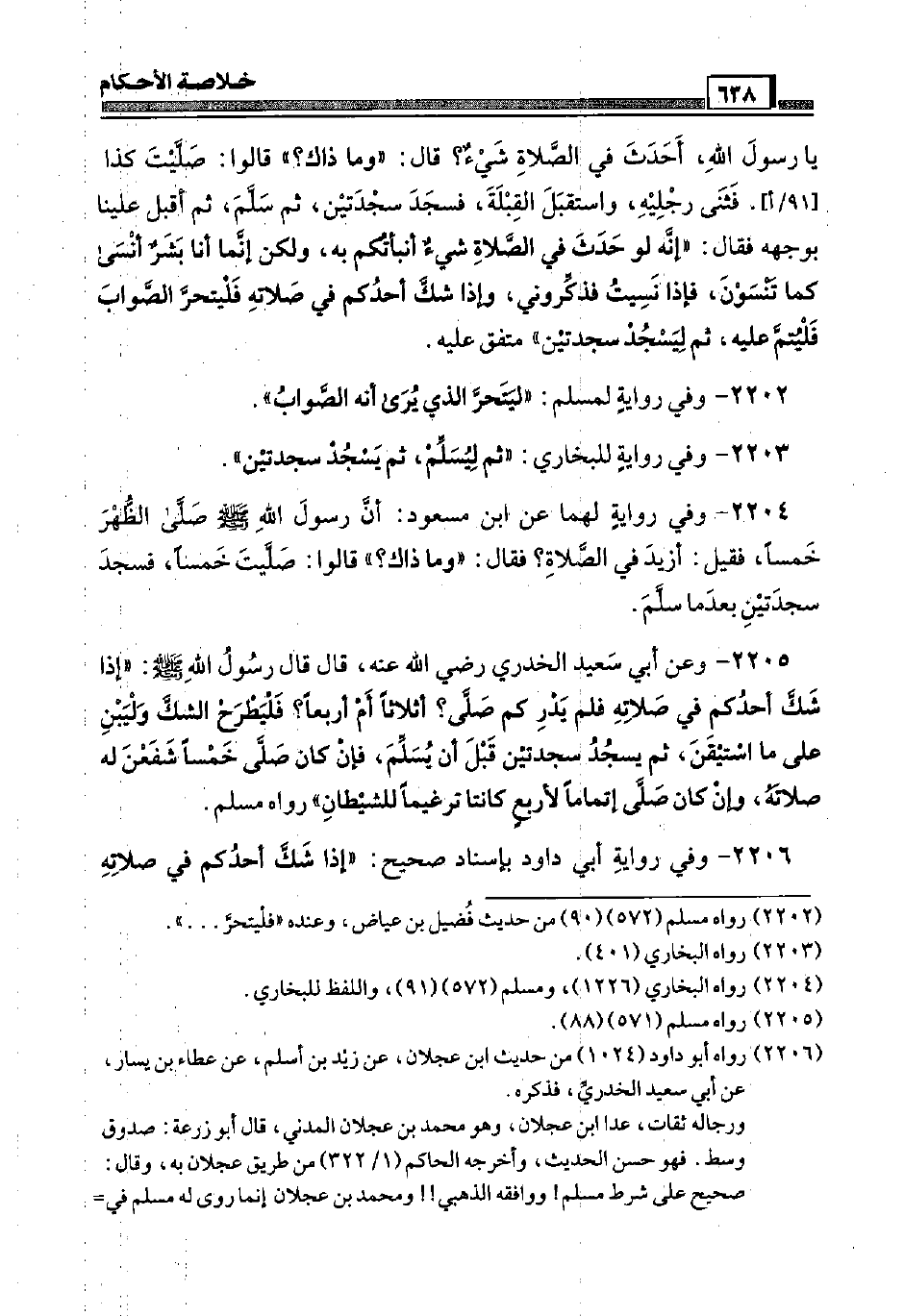 2204 - وَفِي رِوَايَة لَهما عَن ابْن مَسْعُود: أَن رَسُول الله صَلَّى اللَّهُ عَلَيْهِ وَسَلَّم َ صَلَّى الظّهْر خمْسا، فَقيل: أَزِيد فِي الصَّلَاة؟ فَقَالَ: " وَمَا ذَاك؟ " قَالُوا: صليت خمْسا، فَسجدَ سَجْدَتَيْنِ بَعْدَمَا سلم.