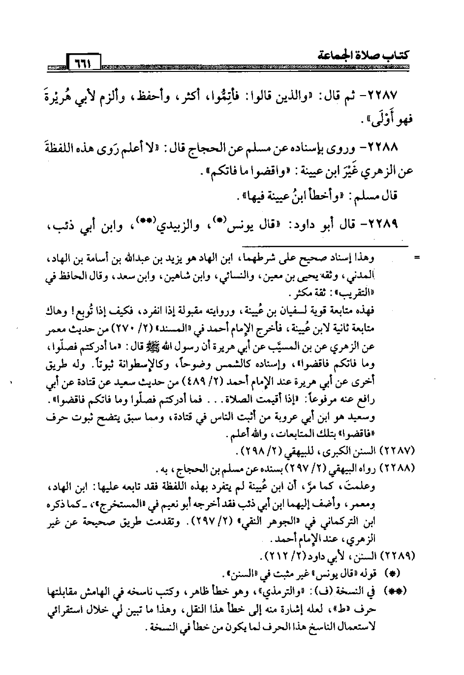 2288 - وَرَوَى بِإِسْنَادِهِ عَن مُسلم عَن الْحجَّاج قَالَ: " لَا أعلم رَوَى هَذِه اللَّفْظَة عَن الزُّهْرِيّ غير ابْن عُيَيْنَة: " واقضوا مَا فاتكم ". قَالَ مُسلم: " وَأَخْطَأ ابْن عُيَيْنَة فِيهَا ".