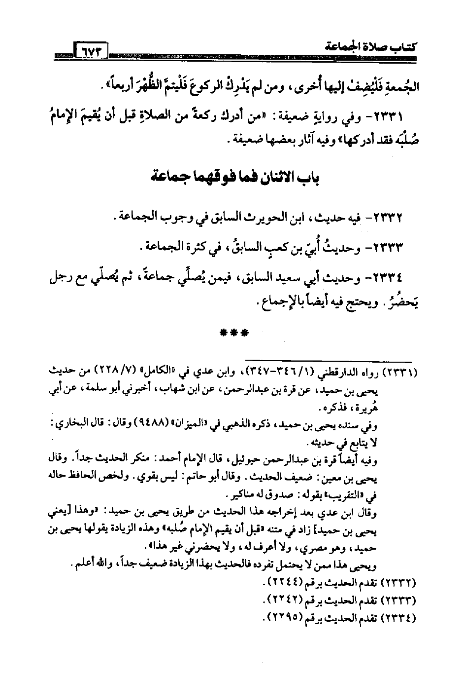 2334 - وَحَدِيث أبي سعيد السَّابِق، فِيمَن يُصَلِّي جمَاعَة، ثمَّ يُصَلِّي مَعَ رجل يحضر. ويحتج فِيهِ أَيْضا بِالْإِجْمَاع.
