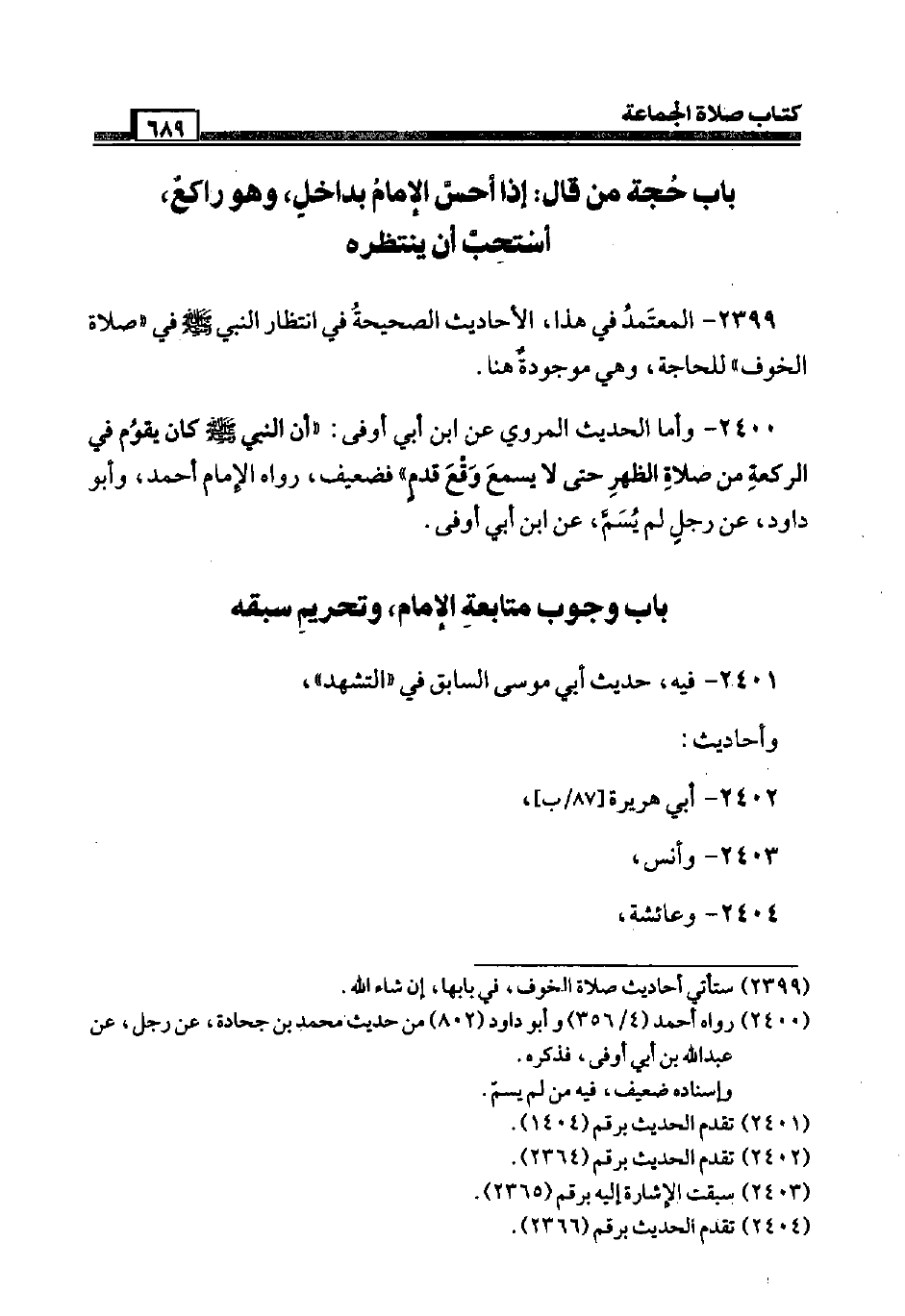 (بَاب حجَّة من قَالَ: إِذا أحس الإِمَام بداخلٍ، وَهُوَ رَاكِع، أستحب أَن ينتظره)