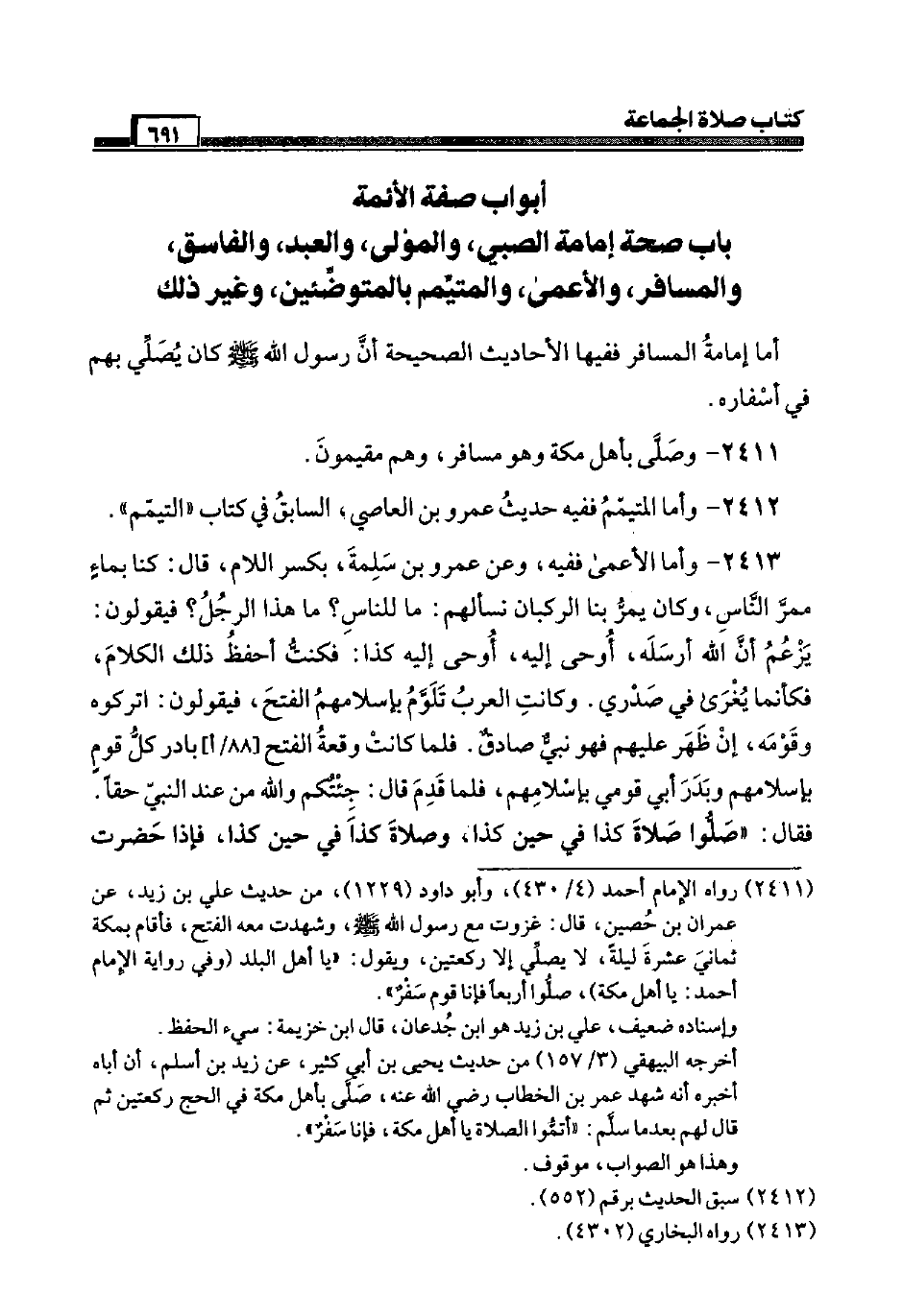 2411 - وَصَلى بِأَهْل مَكَّة وَهُوَ مُسَافر، وهم مقيمون.