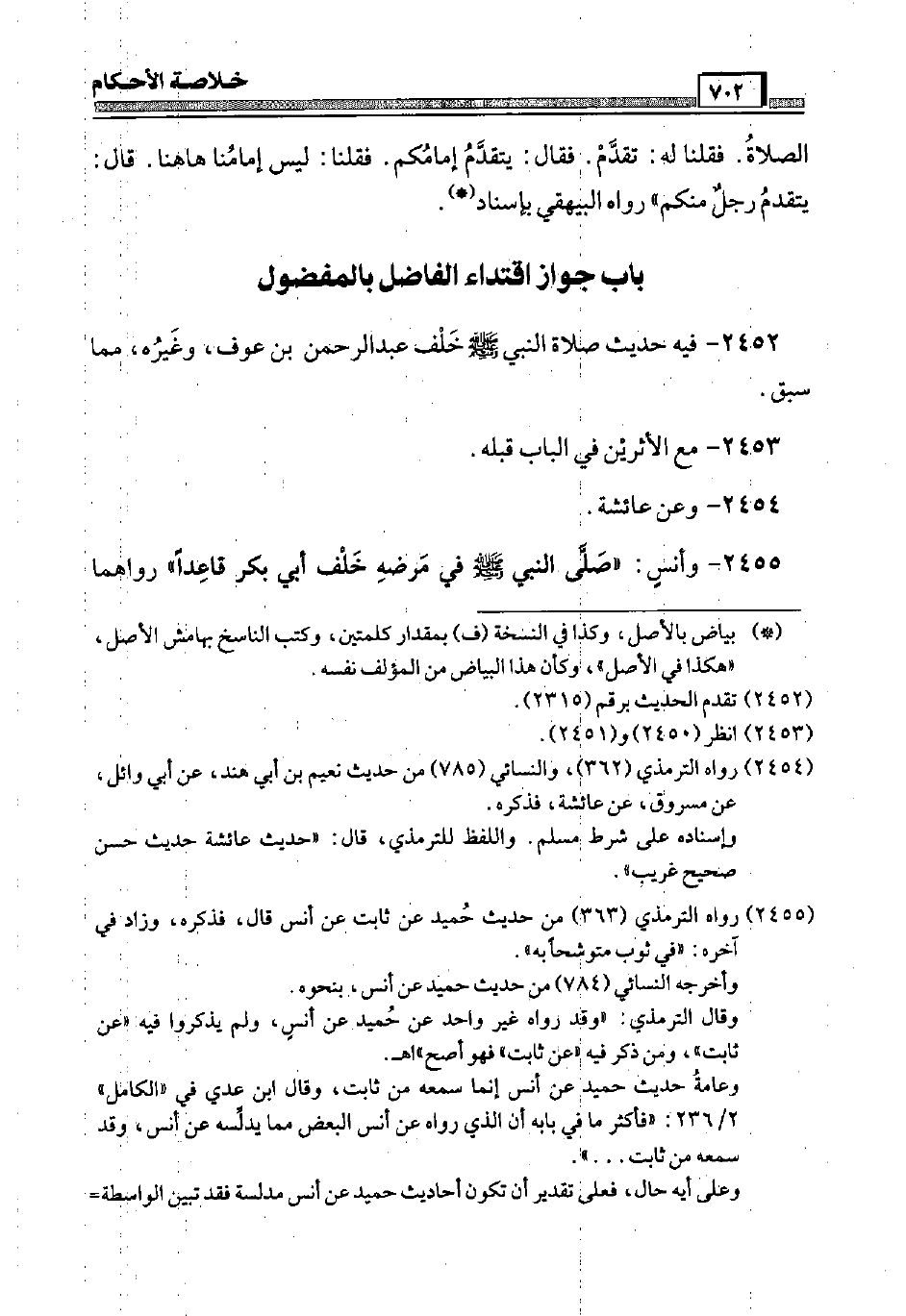 2452 - فِيهِ حَدِيث صَلَاة النَّبِي صَلَّى اللَّهُ عَلَيْهِ وَسَلَّم َ خلف عبد الرَّحْمَن بن عَوْف، وَغَيره، مِمَّا سبق.